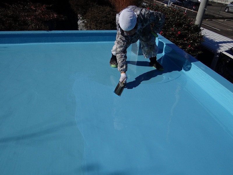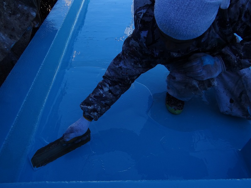 しっかりと乾燥させ、青空のもとお昼から2回目のウレタンを流しておりました。