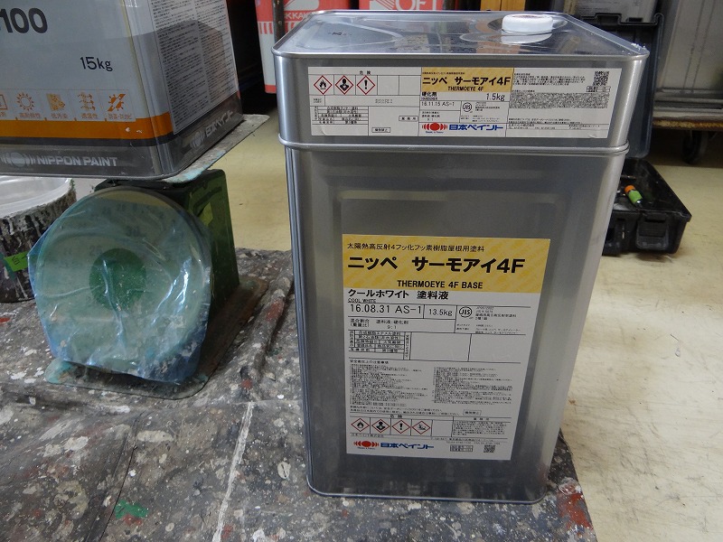 中塗りの準備。材料はサーモアイ4Fクールホワイト。さーて塗り始めましょ~