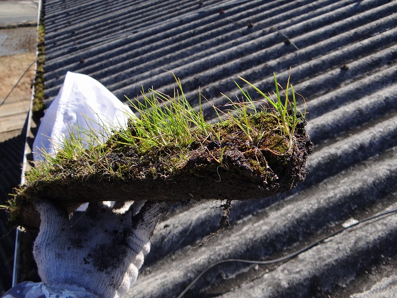 今日は樋の清掃です。鳥がくわえてくるんでしょうね、まぐろフレーク缶。過去にもプリンの器が詰まり雨漏りした事がありました。