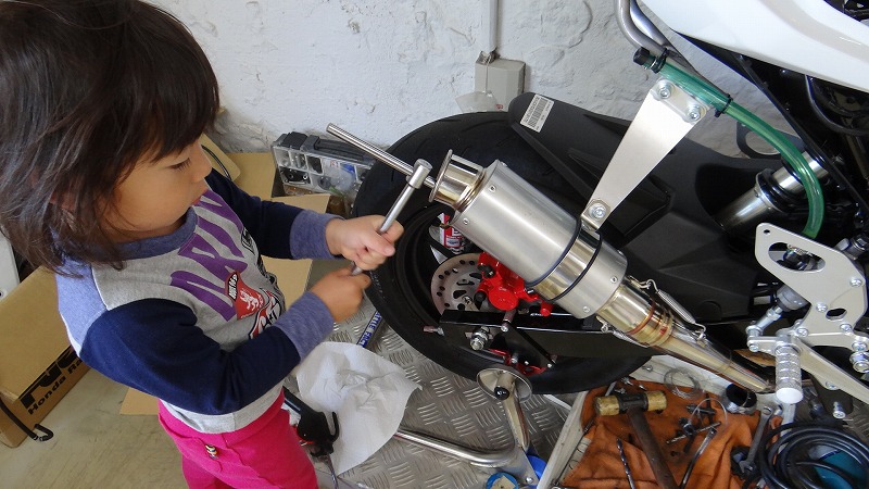今朝は保育園に行く前のチビ達と遊んでおりました。まー整備ごっこといった所でしょうかね。。カンカンとハンマーで叩かれたり、