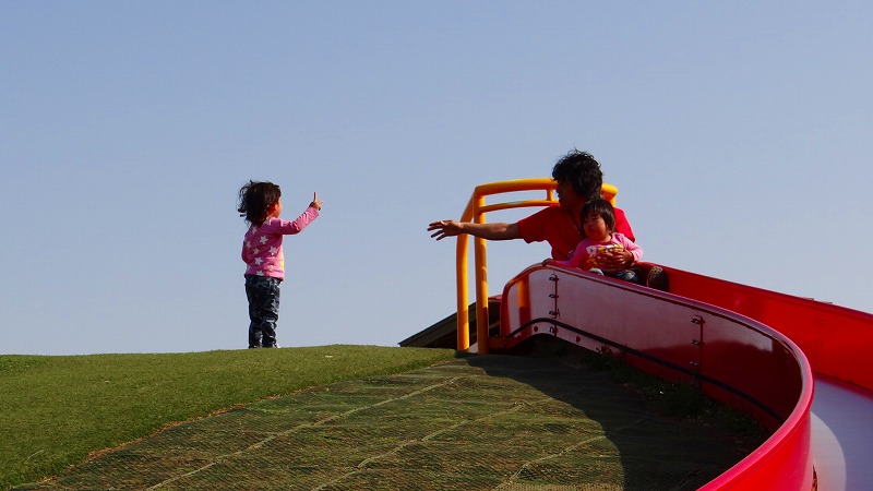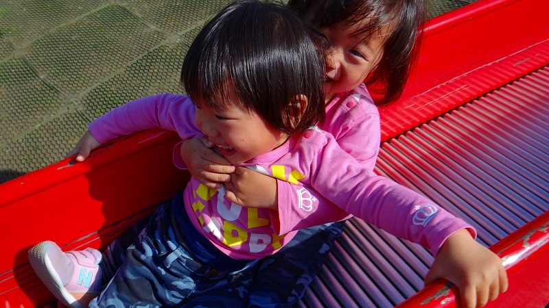 カラカラと楽しく滑り台。