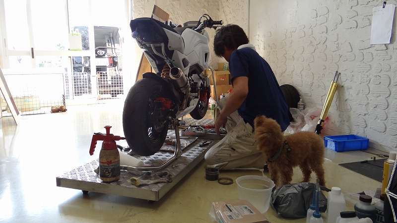 今日の防水工事はウレタン塗膜の2層目をすいすい~と流しておりました。午後からグロムでゴー!したかったけどちょっと無理ね。。。