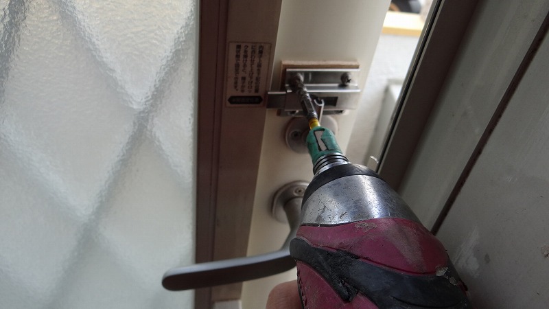 ついでに勝手口の鍵が調子悪いとの事で、取り合えずホームセンターでラッチを購入して取付ます。あー色々と頼まれますね。