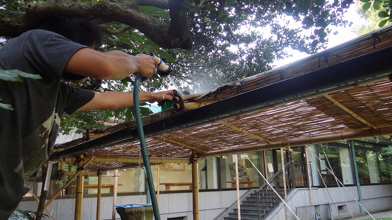 今日はマンションの側溝などのトップコートを塗っておりました。涼しくなった夕方には屋根の洗浄をしておりました。この季節、水を使った仕事は気持ちいい。でも、まだまだ暑い日が続きます。