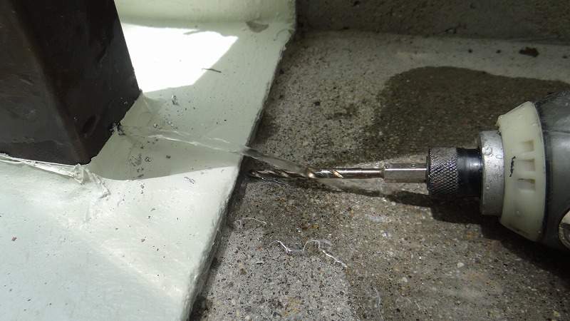 今日から8月です。まずは事務所の神棚の掃除と榊の交換を済ませ、気持ちよくスタートです。現場では手摺の根元のドレン穴を開けました。予想通り水がたくさーん出てきました。その後は塀の躯体補修を行う現場へ移動。まずはしっかり撤去を行いました。