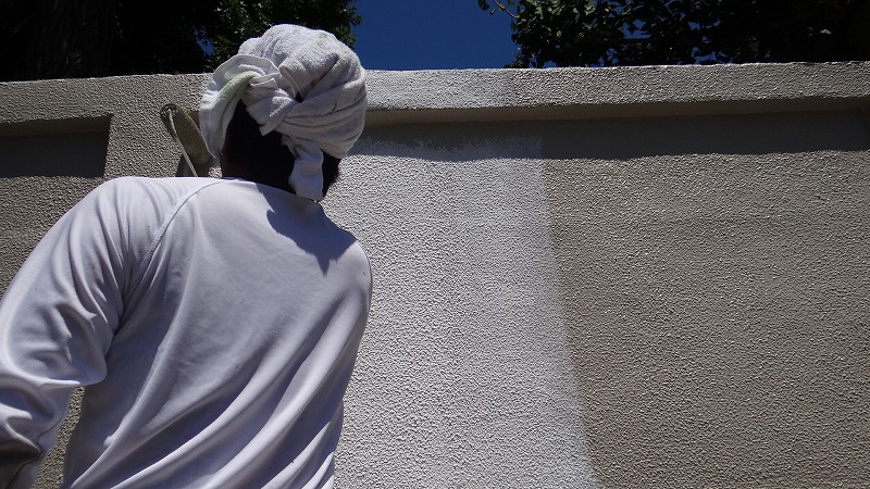 塀の塗装工事。