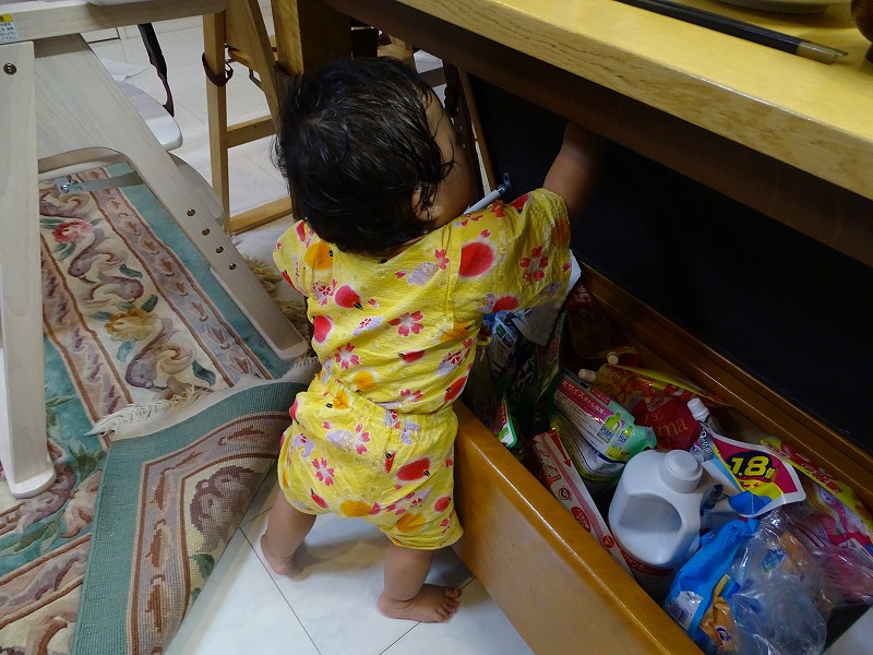 三男坊さんはよーやくつかまり立ちに成功。もうすぐ、よちよち歩くかな。