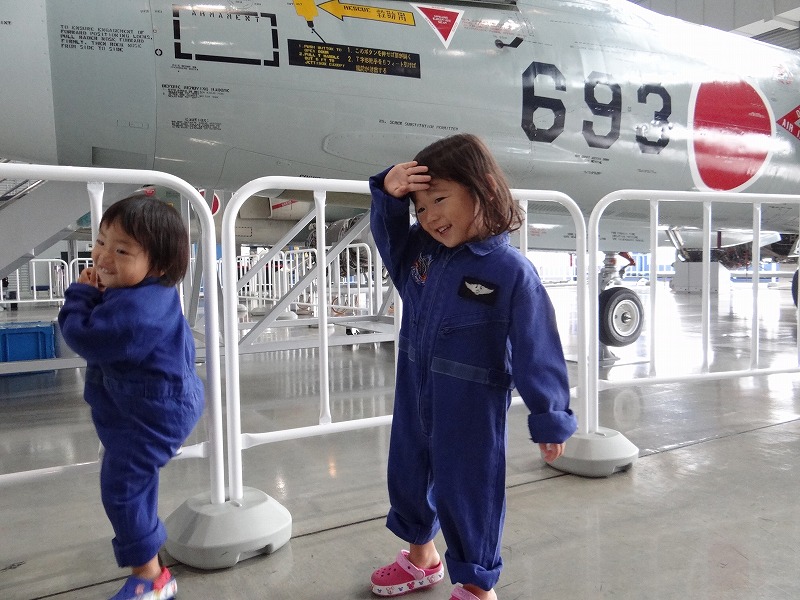 展示航空機には並ばないでゆっくり座れました。まったく分からないけど、コクピットの計器はチビ達の男心をくすぐります。