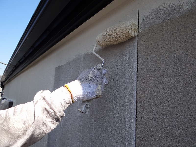 お次は外壁の中塗りをコロコロ~と塗っておりました。