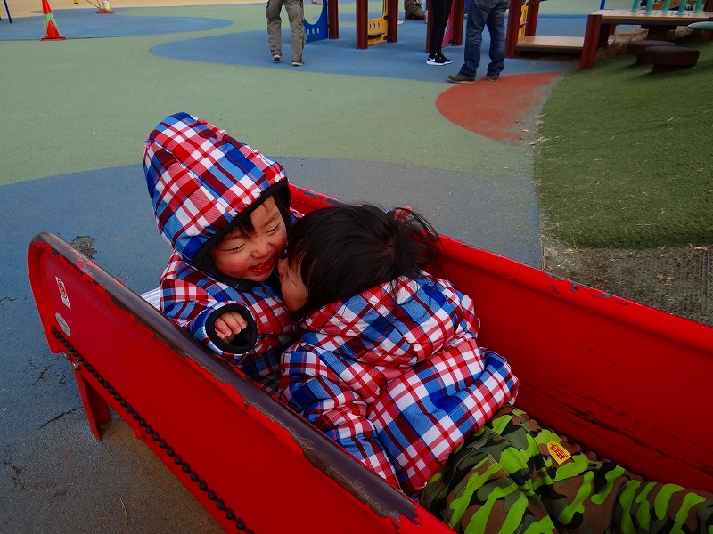 よーやく実家へ帰省しました。昨日はチビ2人が高熱で病院へ走りました。でもインフルエンザではなく一安心。そんな感じで様子みながらの帰宅でした。熱も下がったので、いつもの公園で鼻水たらして遊びます。