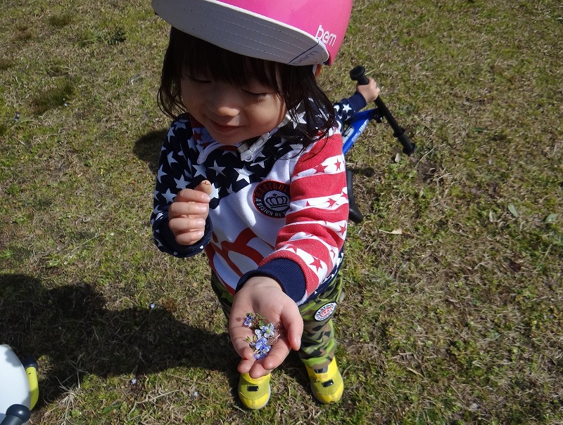 お母さんへ小さな花を摘んできたんだね。優しいね、おにいちゃん。