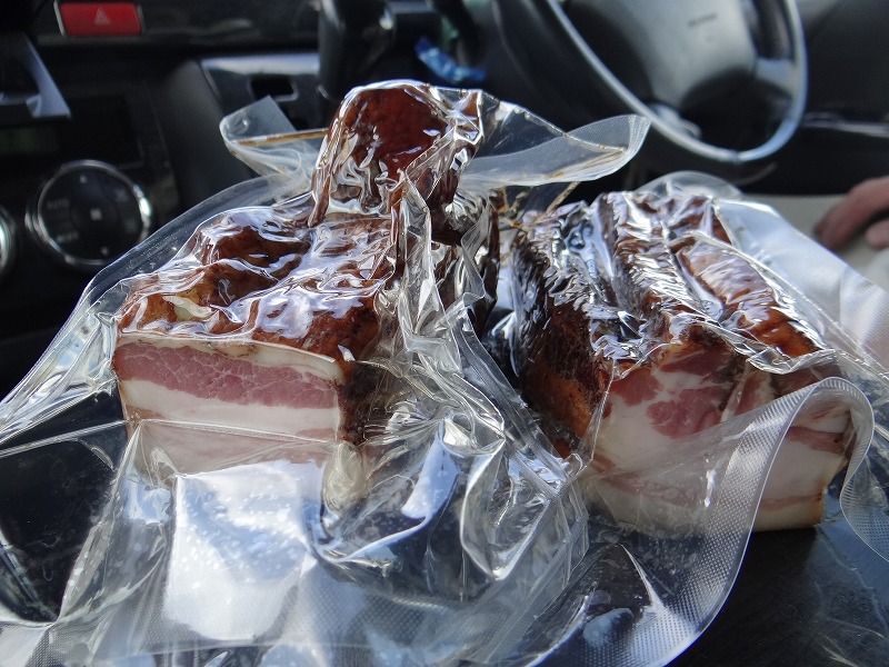 手作りのベーコンを頂きました。美味しそう、ありがとうございました。