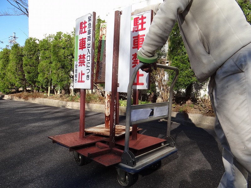 マンションの管理組合様から看板塗装のご依頼をいただきましたので、引き上げに伺いました。そんなモーレツに忙しい一日でした。