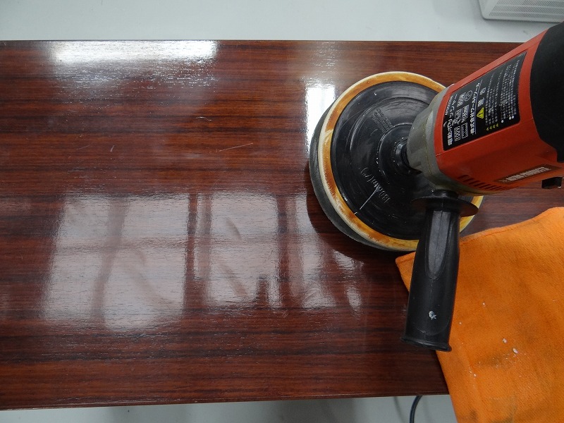 机の天板の手直しを頼まれました。熱い物を置いたのかな。白く変色してます。ムク板じゃないから、どこまで修正できるかな?