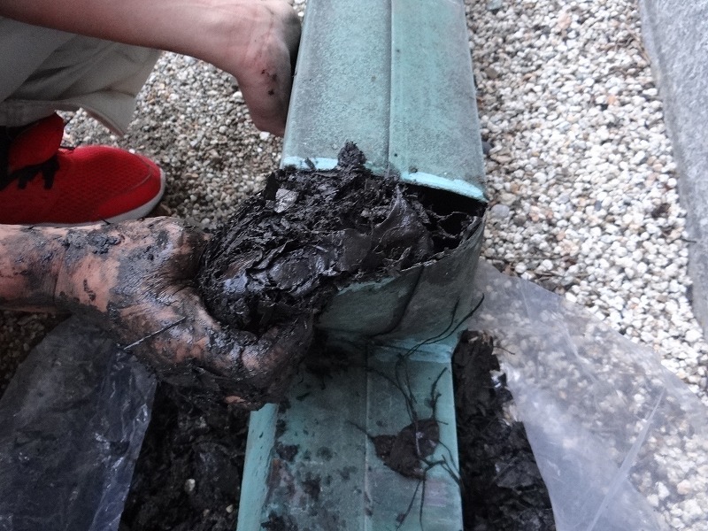 帰り道は、樋の詰まりとのご連絡があり現場へ向かいました。
