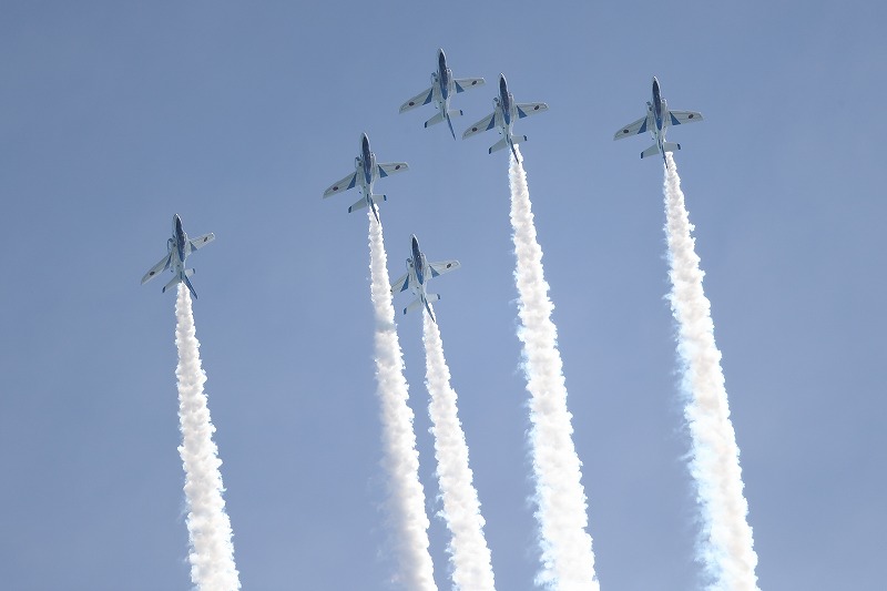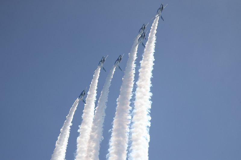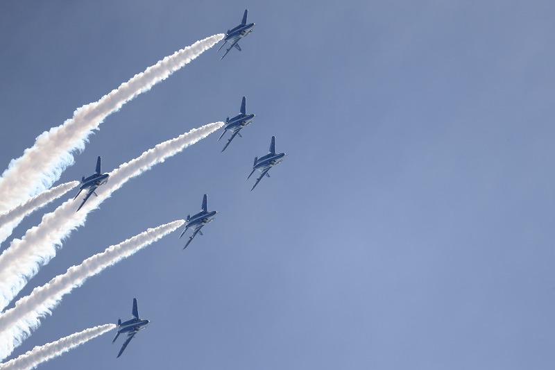 そ~んな感じで遊んでいたら、チビ達の大好きなブルーインパルス。