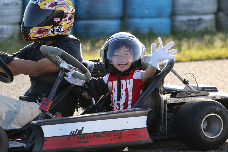 夕方、チビ達が遊びに来たのでレンタルカートに乗せました。
