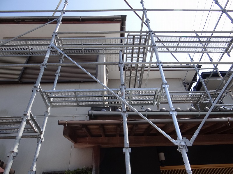 今日から美浜町で住宅の塗装工事を始めました。まずは、仮設足場の設営を行います。