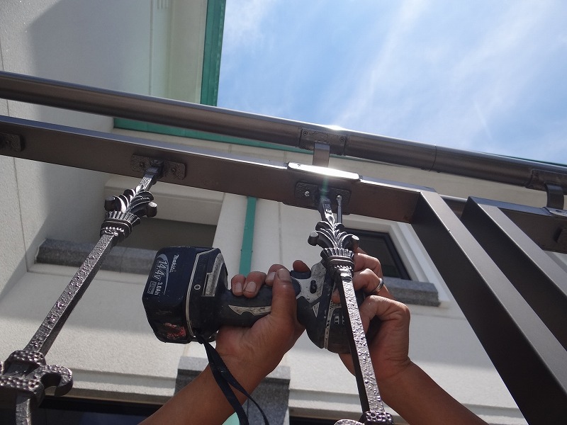今朝のひまわり。もう咲いてました。夏な感じです。来週に行う工事の部材が届きました。スロープの柱を取付ました。完了。樋の取付も完了。この部材も塗装を済ませました。まーそんな感じの日です。