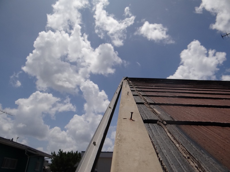 急遽、外壁塗装工事をお待たせしている御施主様からご連絡がありました。強風で屋根の水切りが外れたとの事。急いで向かい、応急処置をして帰宅です。