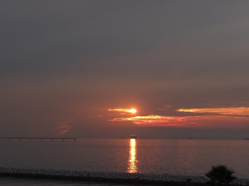 今日も順調に塗装工事を進めておりました。フッ素のクリヤーはここの個所を2回塗って仕上げます。まーそんな感じで夕方からは打ち合わせです。ここ最近は夕日がきれいですね。