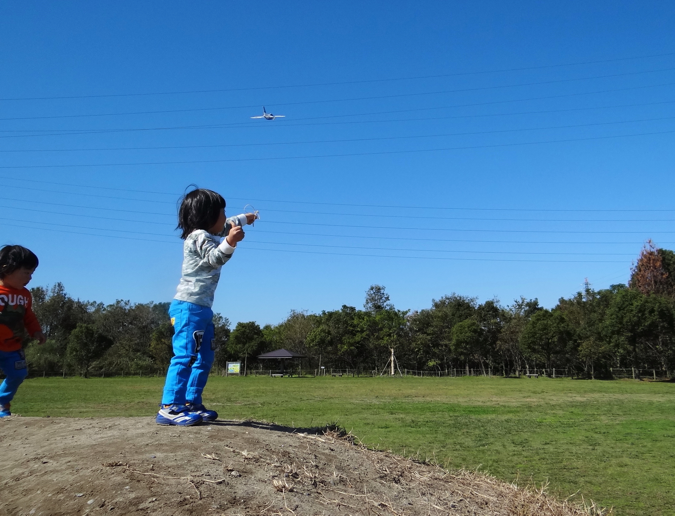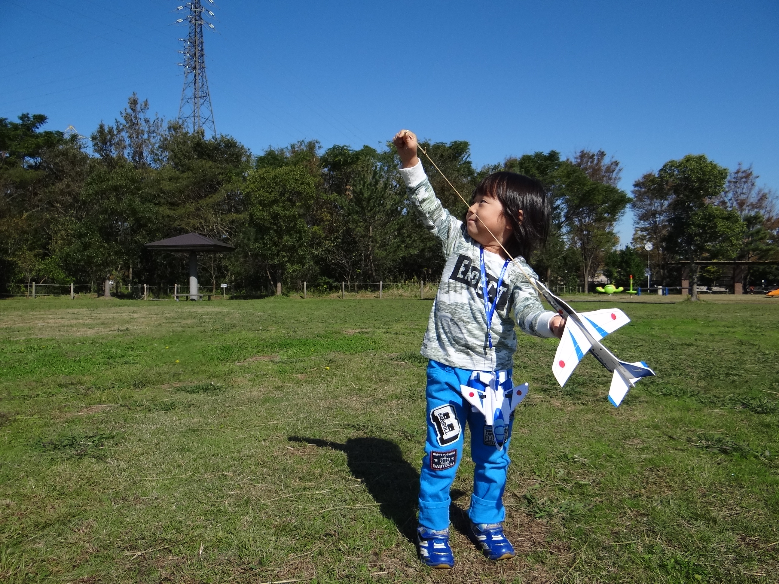 お昼からは公園でヒコーキを飛ばして、