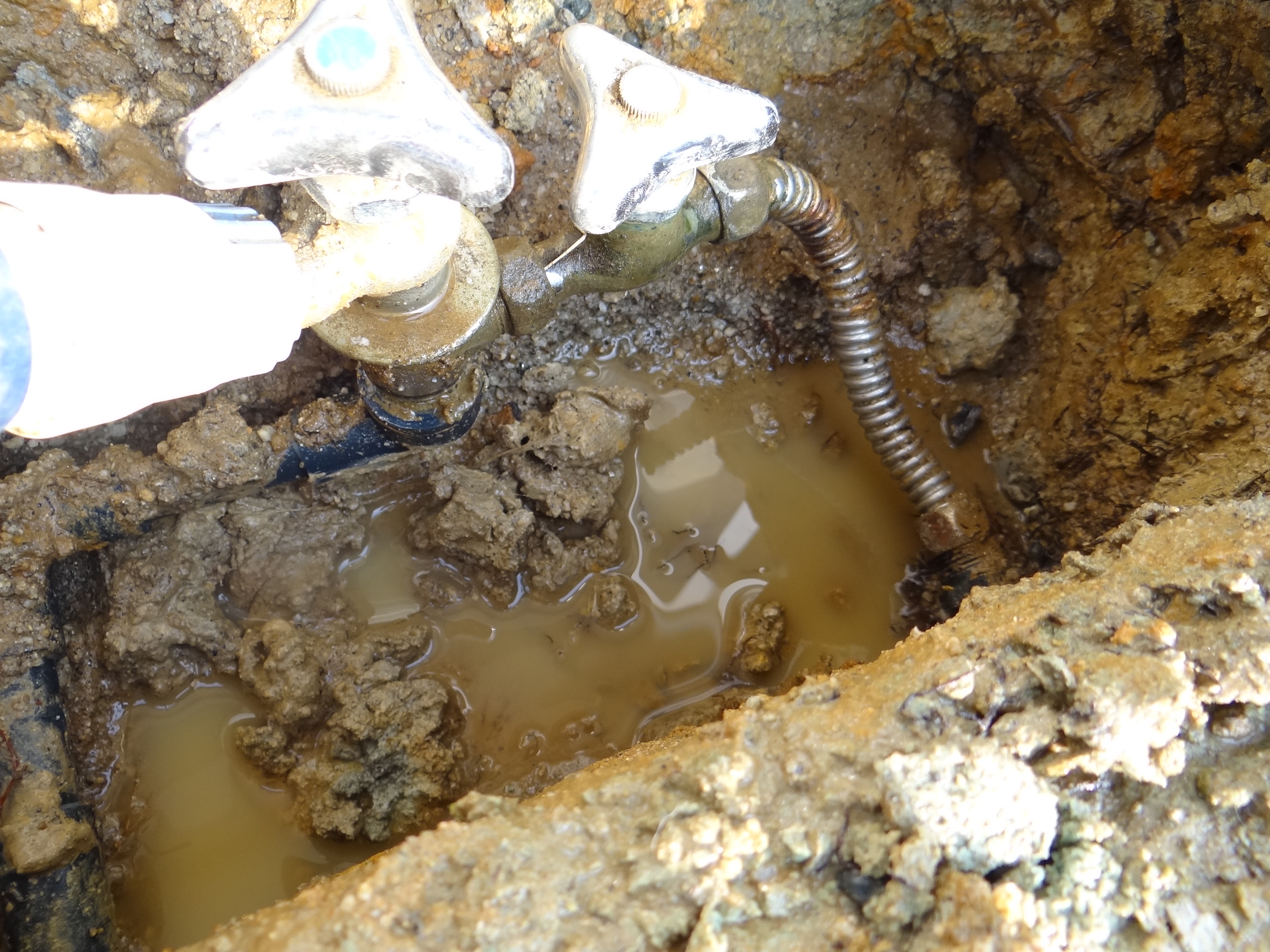 庭の散水栓の周囲から水が止まらないとの事でスピード対応です。コレ原因。そんな感じで仮復旧完了ぅ。お正月前でよかった。その後は床塗装のご相談でした。まーそんな感じの日でした。