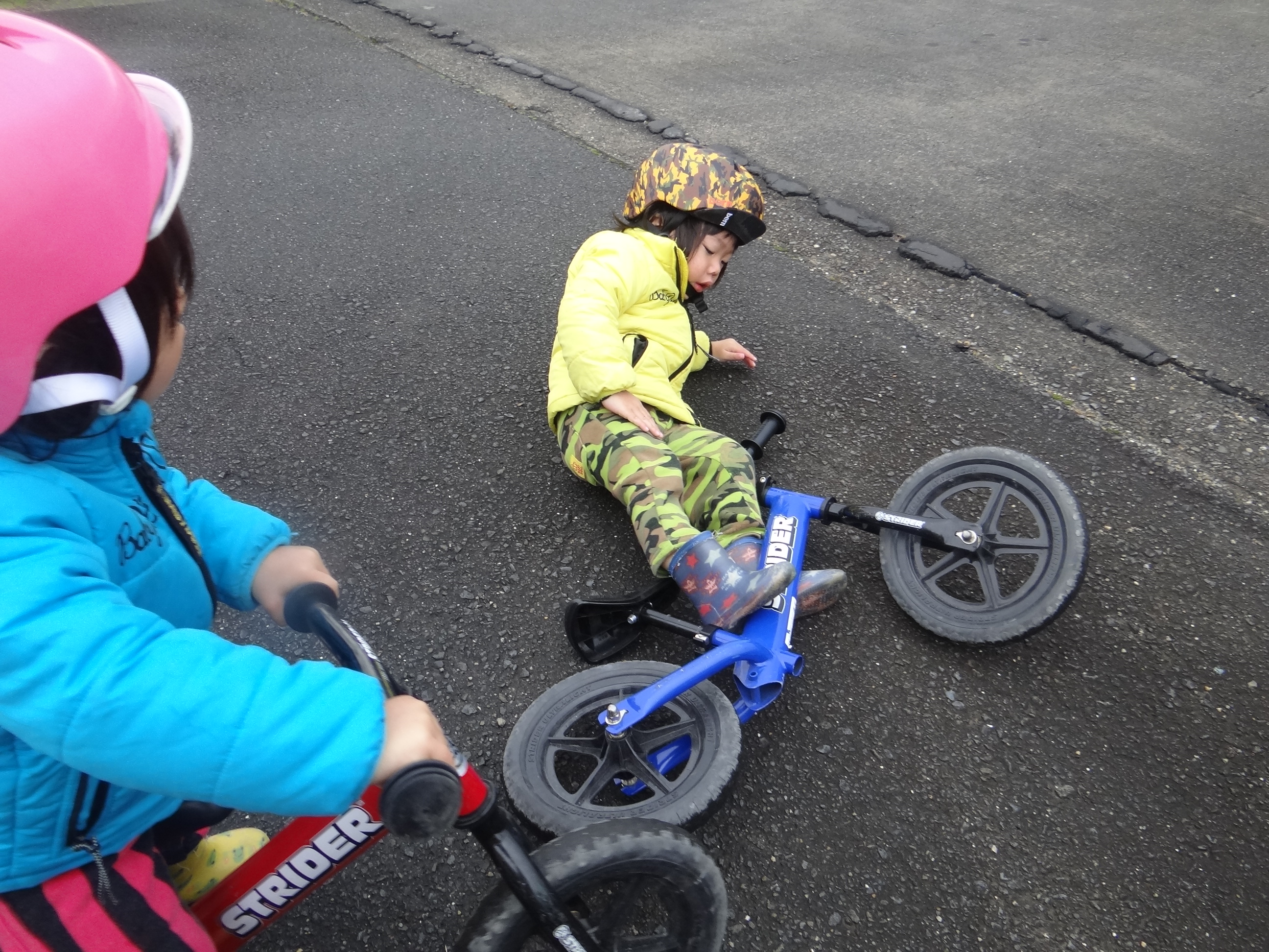 でもまーストライダーは、相変わらずよく転びます。