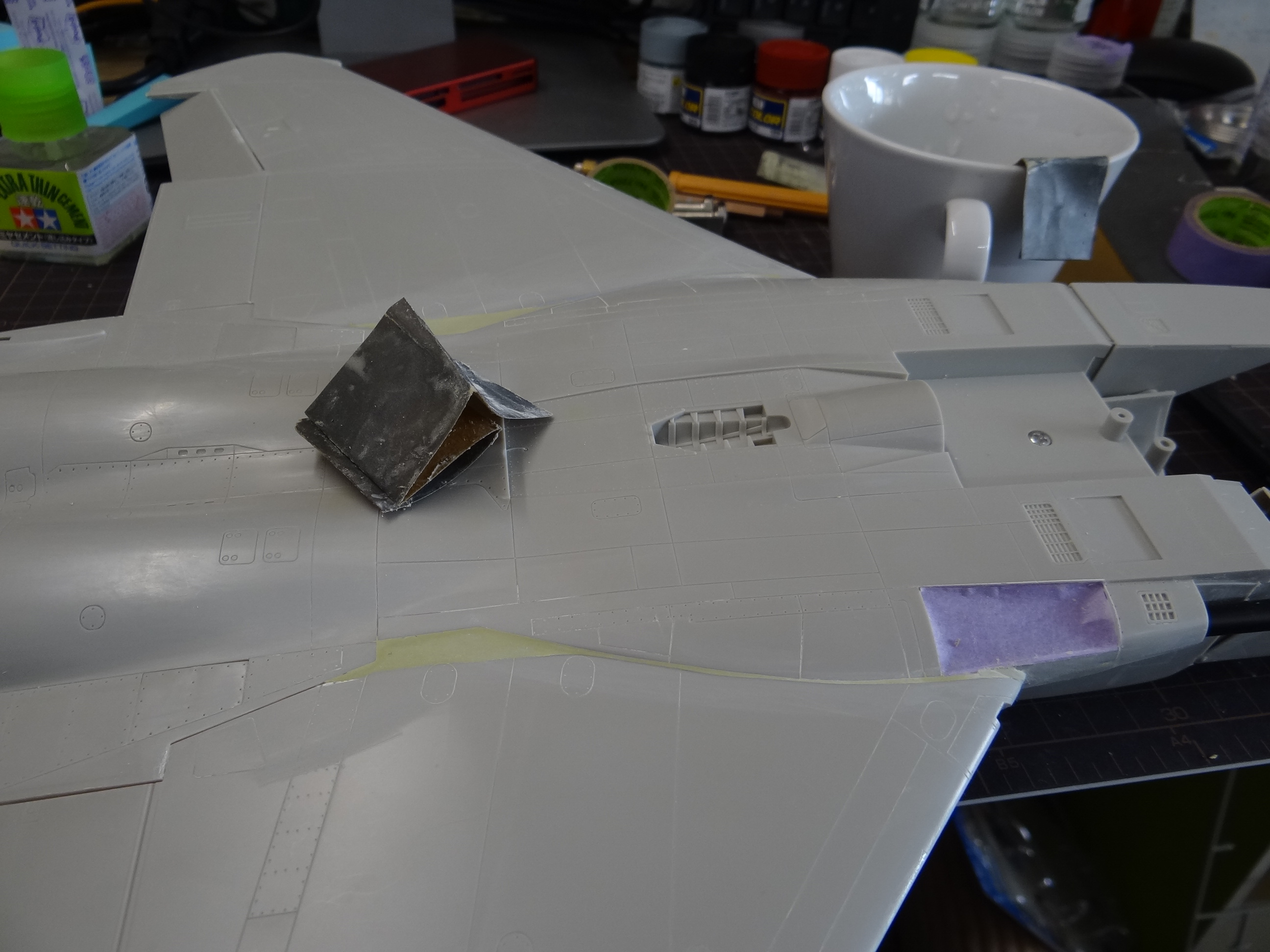 早朝からプラモです。ちび達は皆でリニア鉄道館へ行ったので集中できます。とりあえず僕みたいなプラモ初心者でも主翼の隙間が気になるので補修。