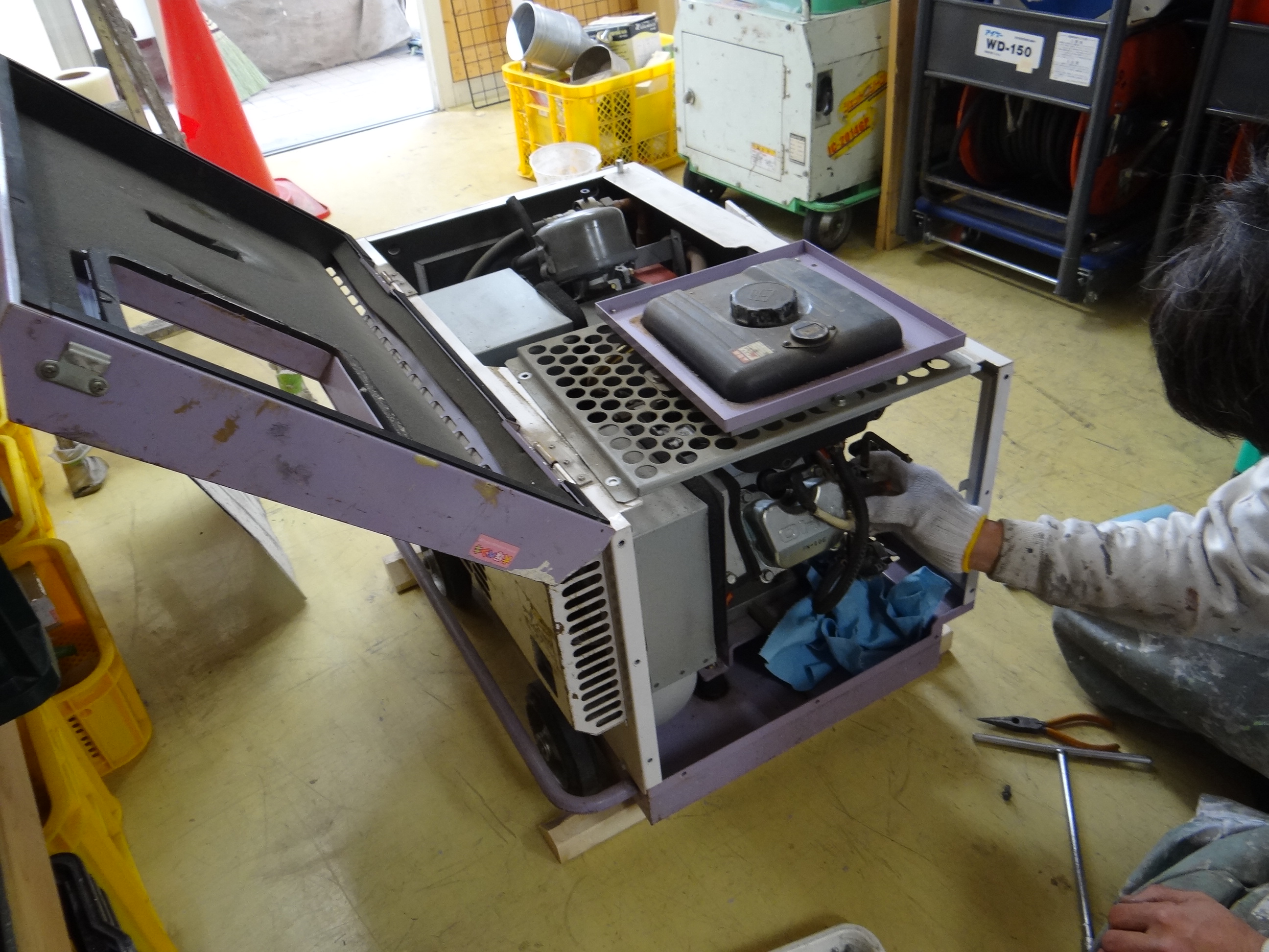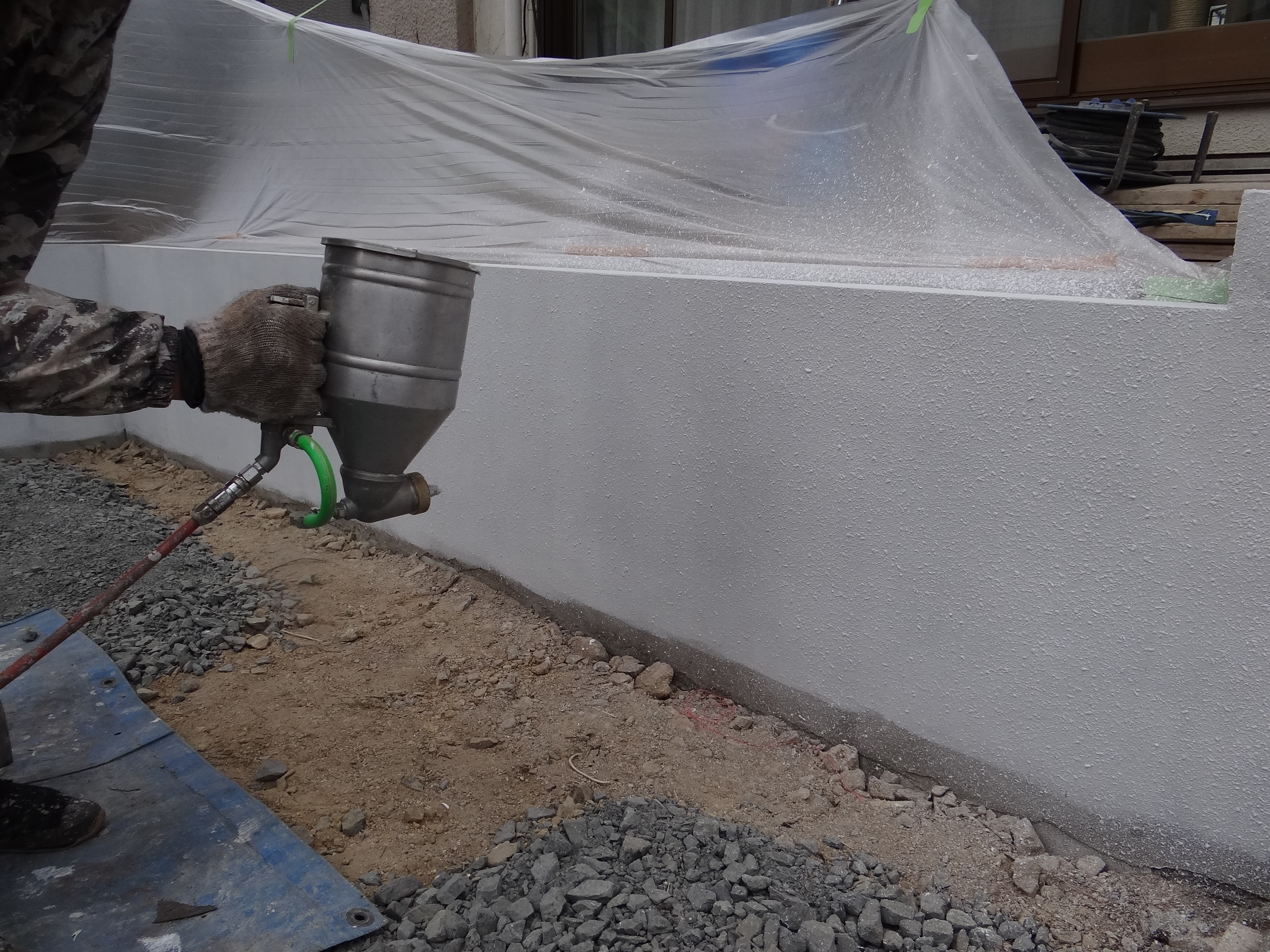 今日は塀の塗装工事。まずは下塗りをコロコロ~二回目コロコロ~そしてパターン吹き。その後、上塗りをコロコロして完了。戻ってから、なんとなーくコンプレッサーの調子が気になるので点検整備です。