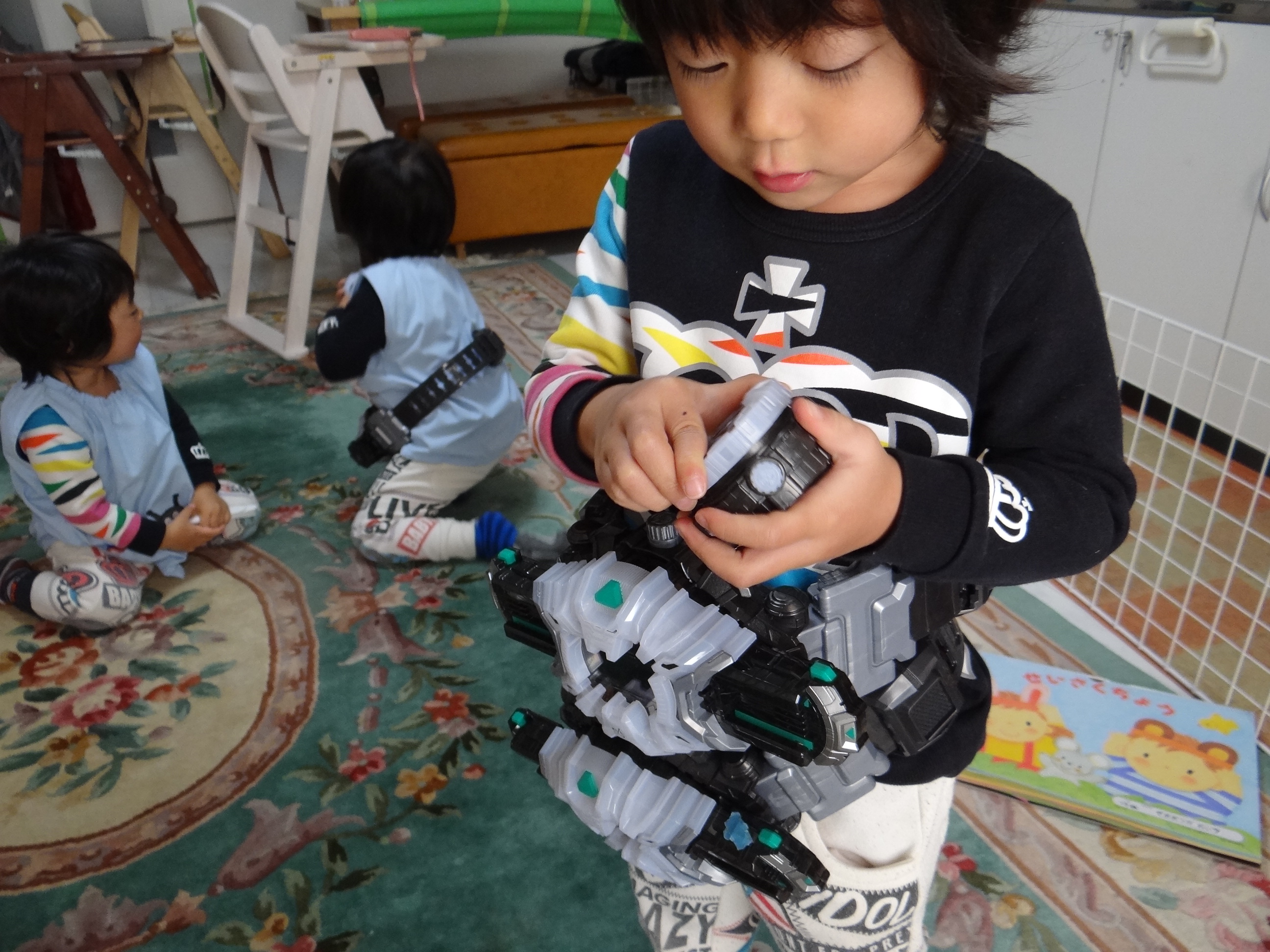 弟のベルトを取り上げる。それも兄弟の力関係ね。