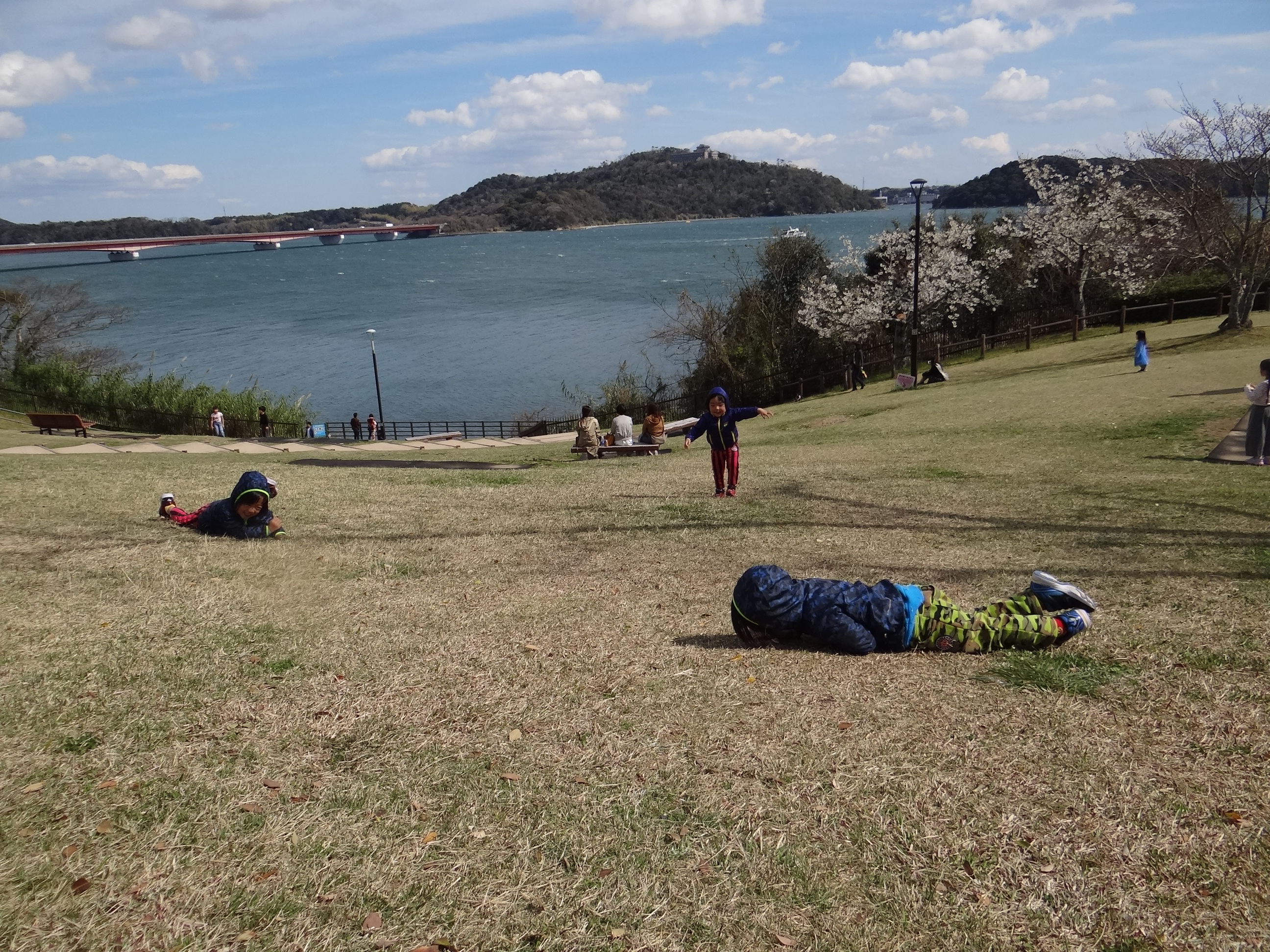 今日のリクエストは、またエアーパークでした。変身させてもらってハイポーズ。帰り道は浜松サービスエリアで休憩。桜が咲き始めておりました。ゴロゴロして遊んで。雲がキレイだったな~