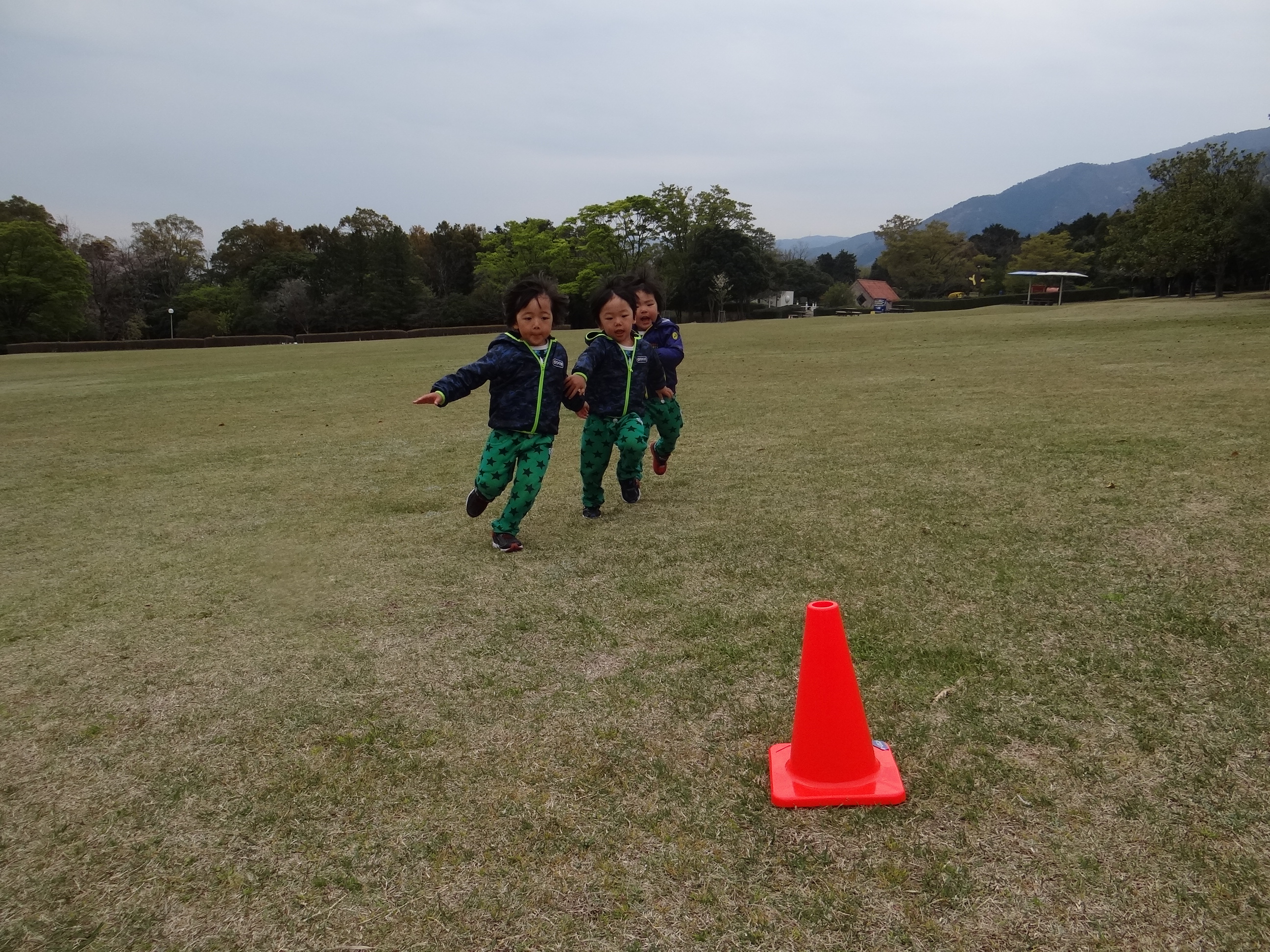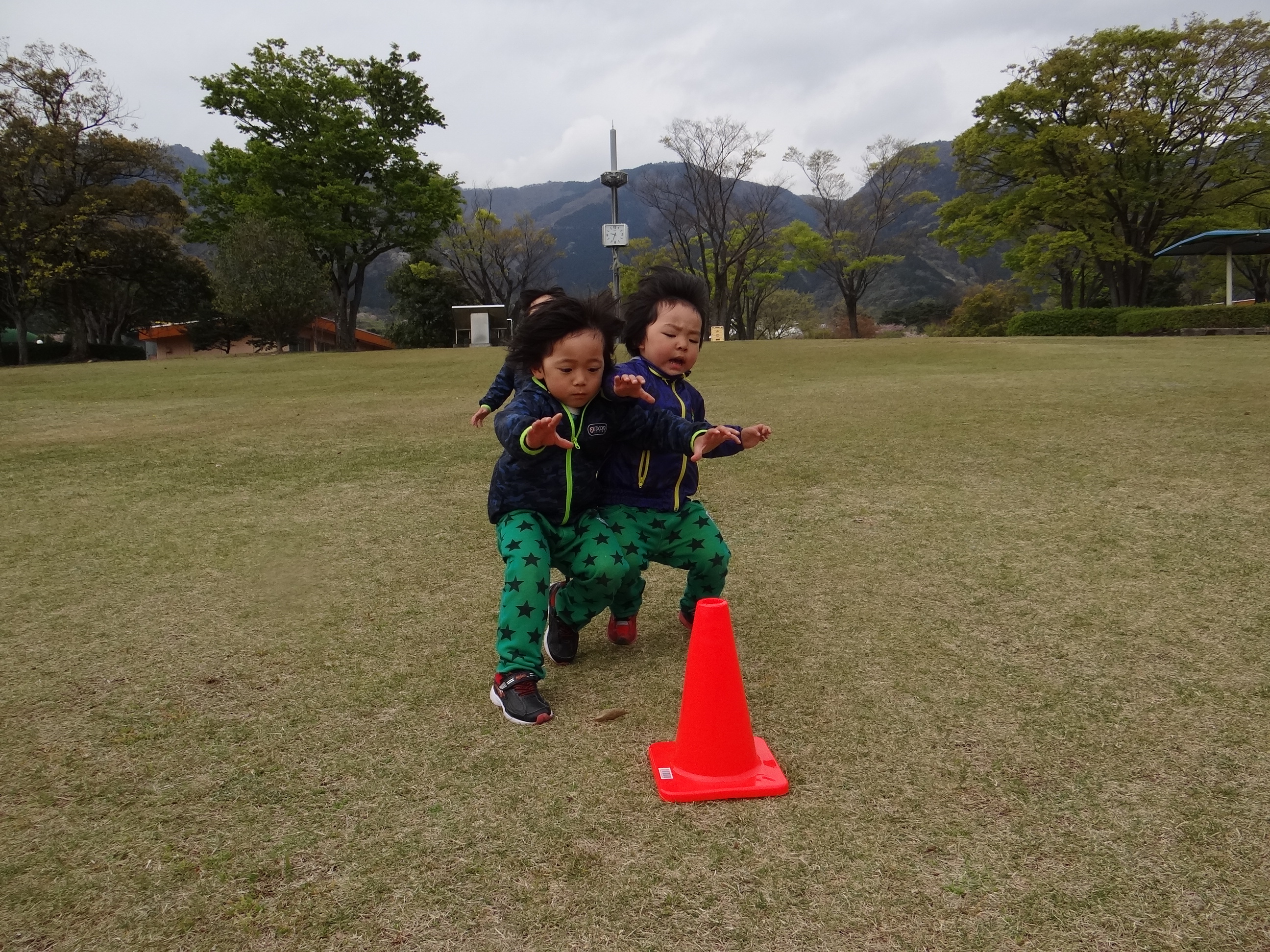 今日は雨が降る前に公園です。兄弟仲良くブランコで遊んだ後は、