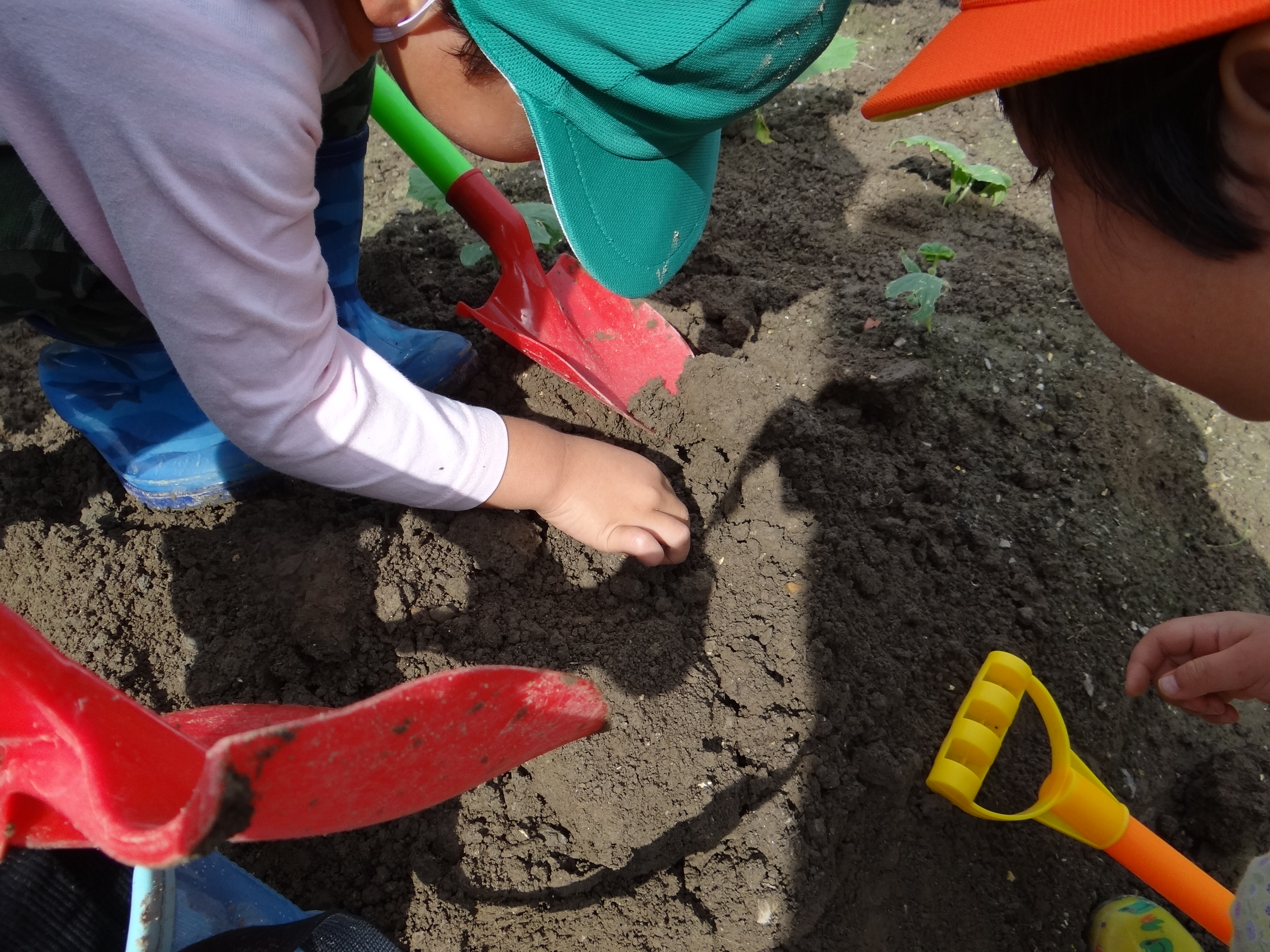 朝の涼しい時間はお義父さんの畑で野菜を取ったり土遊び。みみずに興味しんしん。。その後は、よーやく三男がおむつマンからパンツマンへ変身したので、温水プールで遊んできました。