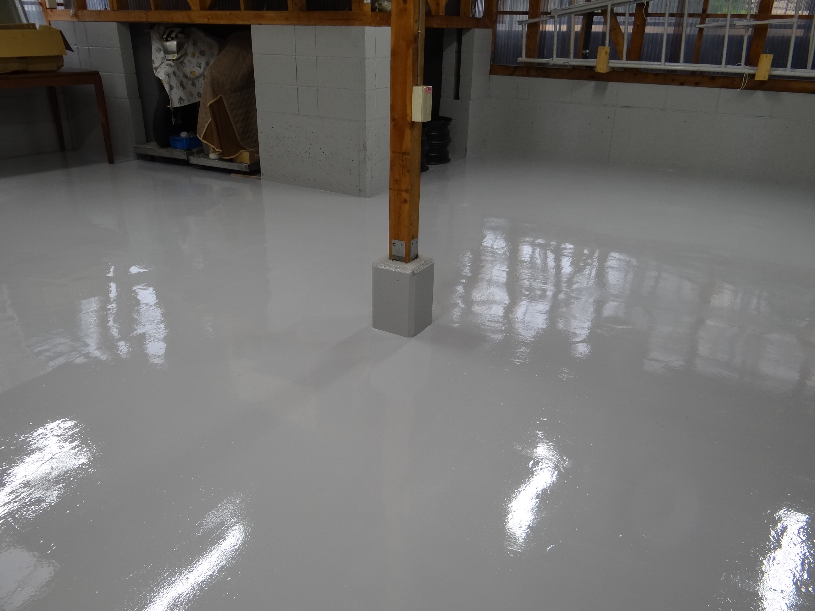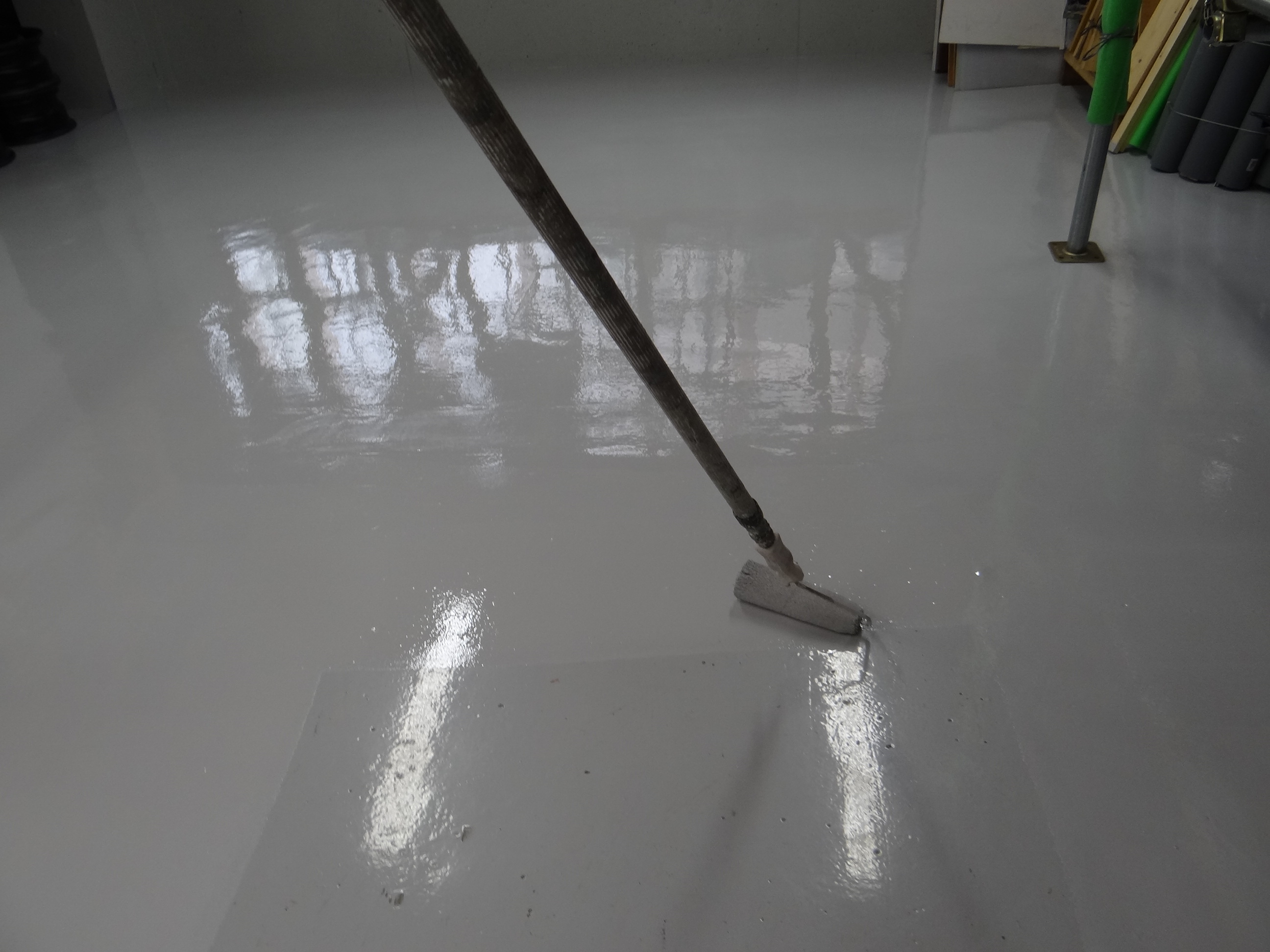 今年の梅雨はよく雨が降ります。そんな日は倉庫の整理整頓。そしてご依頼をいただいております現場で色を確認。倉庫では整理整頓では気が済まなくなり床の塗装を進めます。完了。