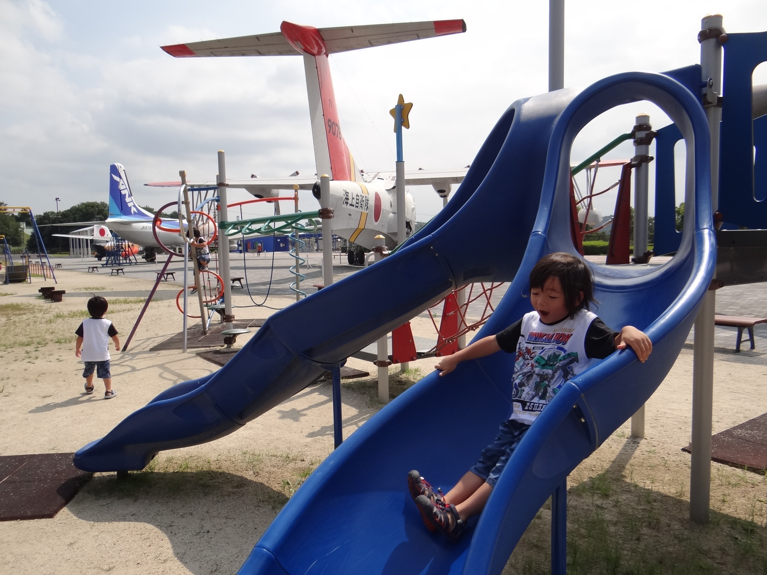外の滑り台でもしっかりと遊んで、