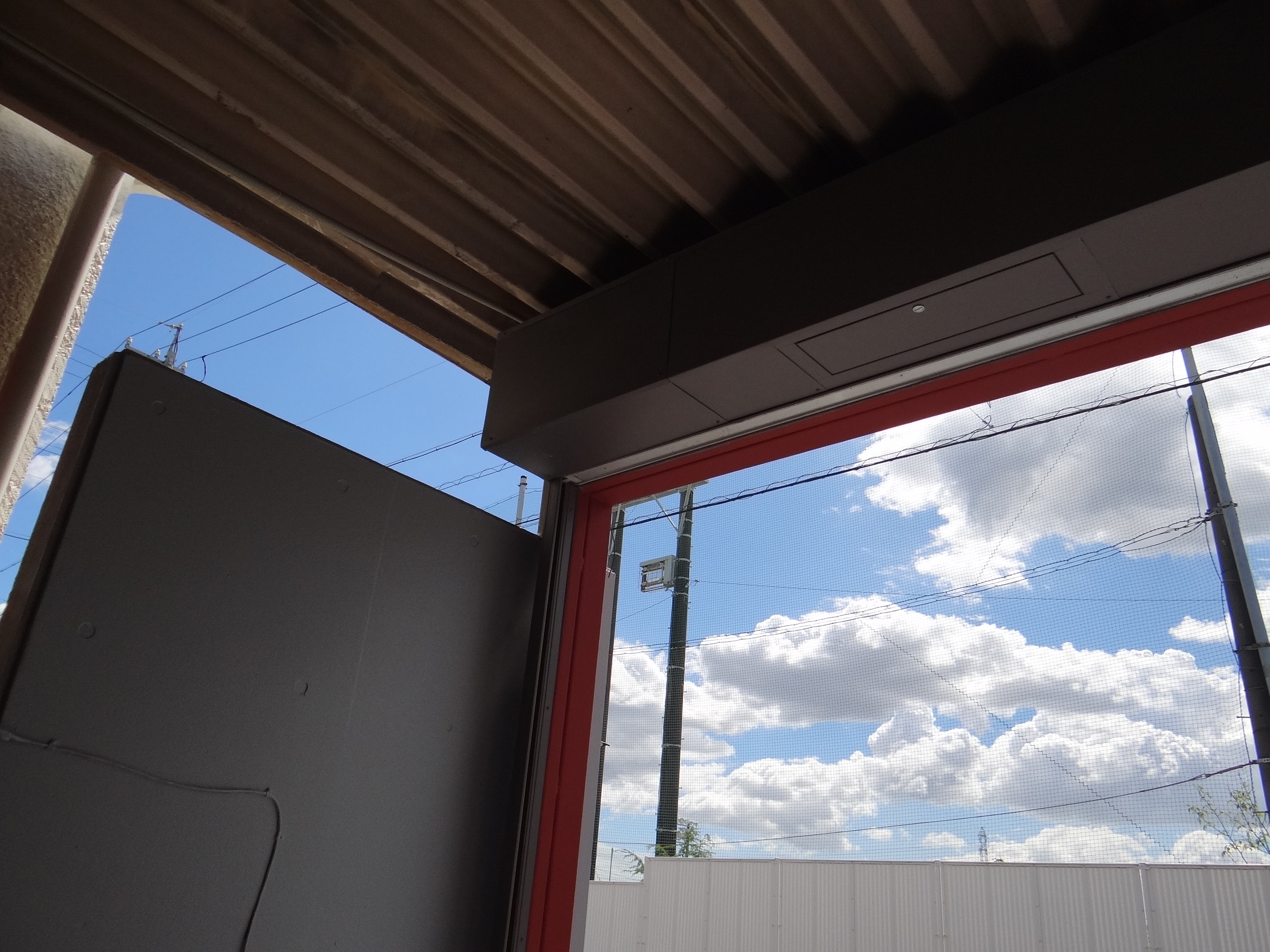 その後は、柱など鉄部の錆止めを塗ってます。しかし、いい天気だ。