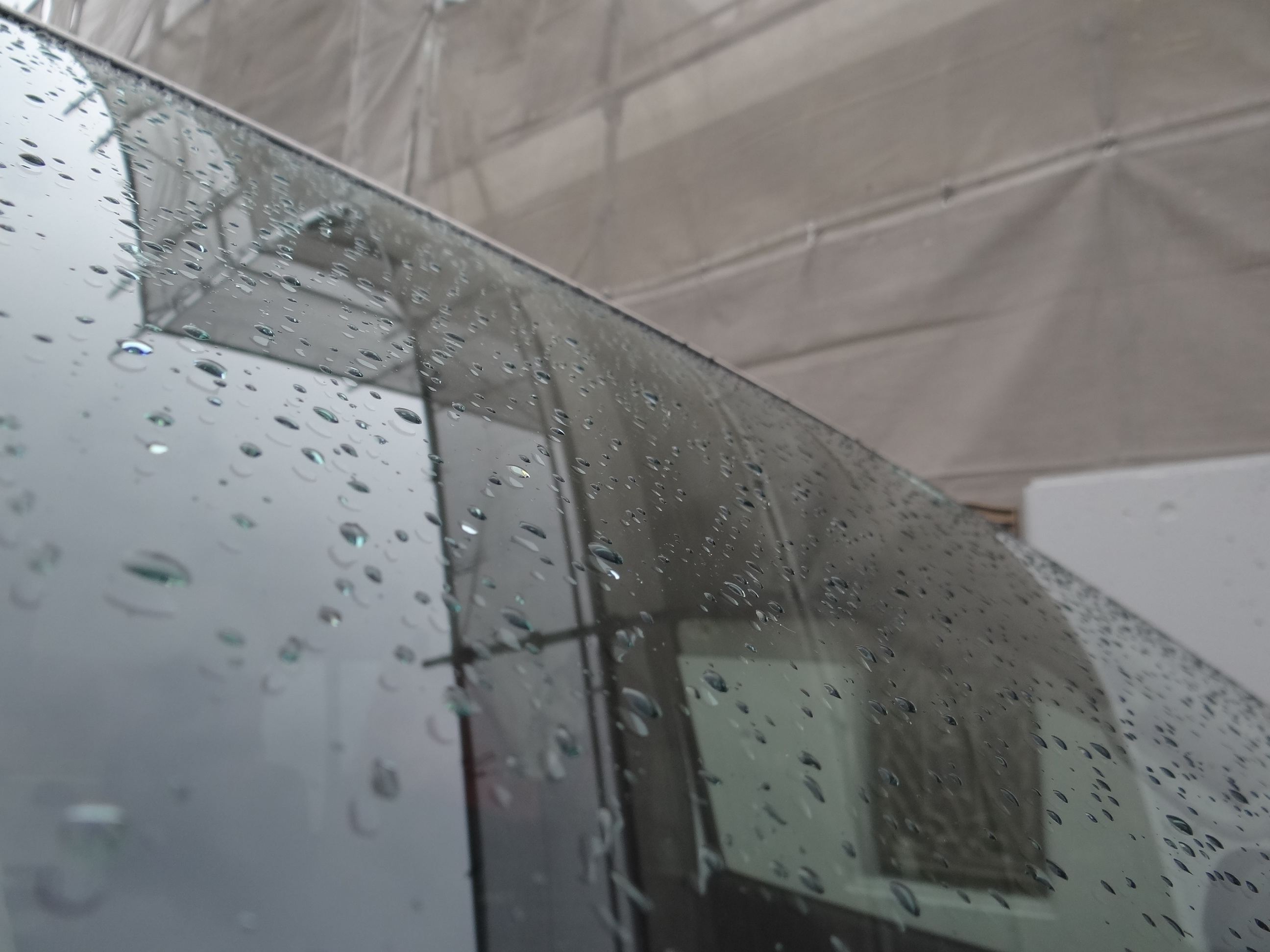 そして残念。天気予報通り雨ですね。施工は中止です。