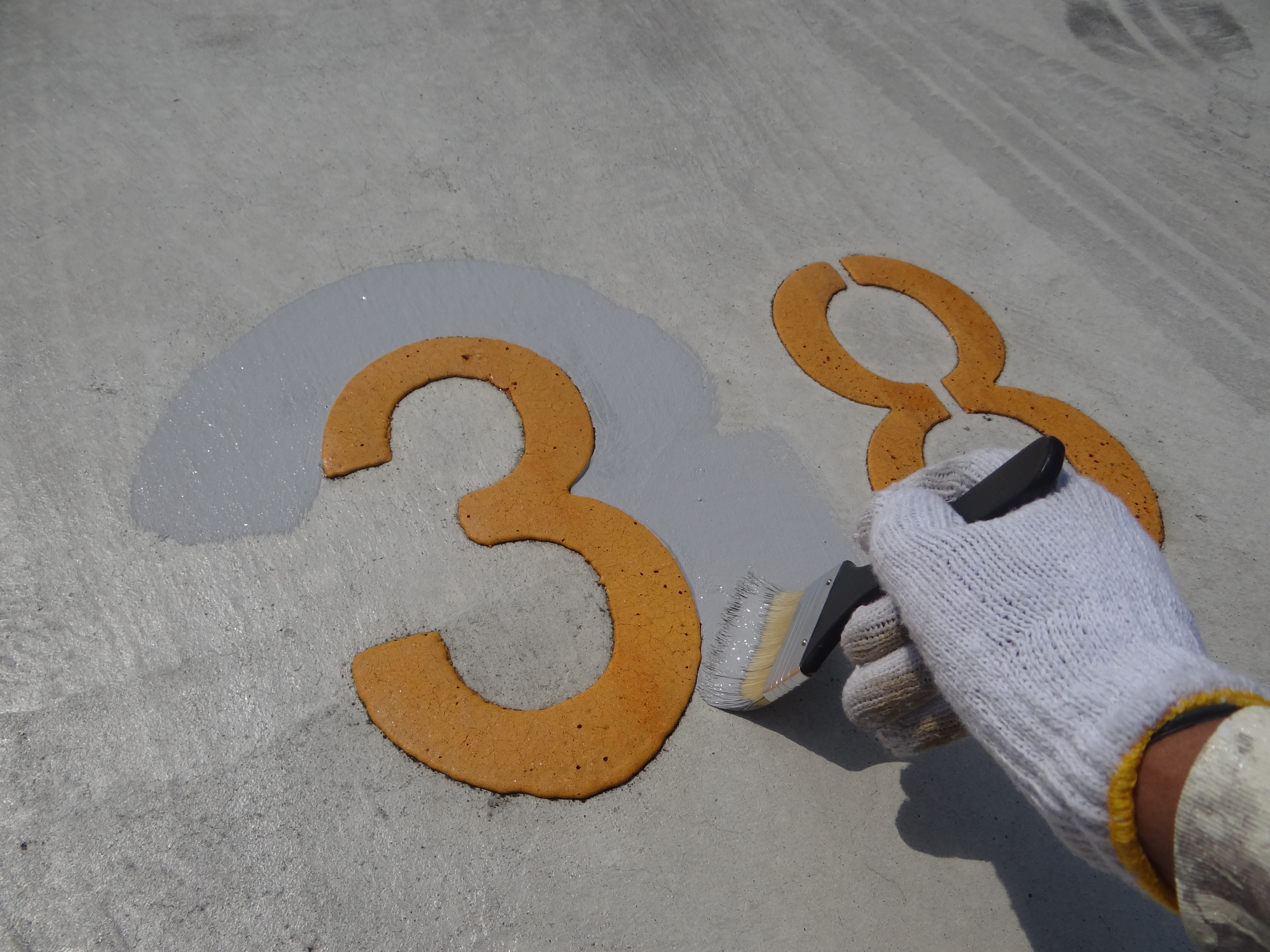 ラインや数字など細かい所から中塗りを始めます。
