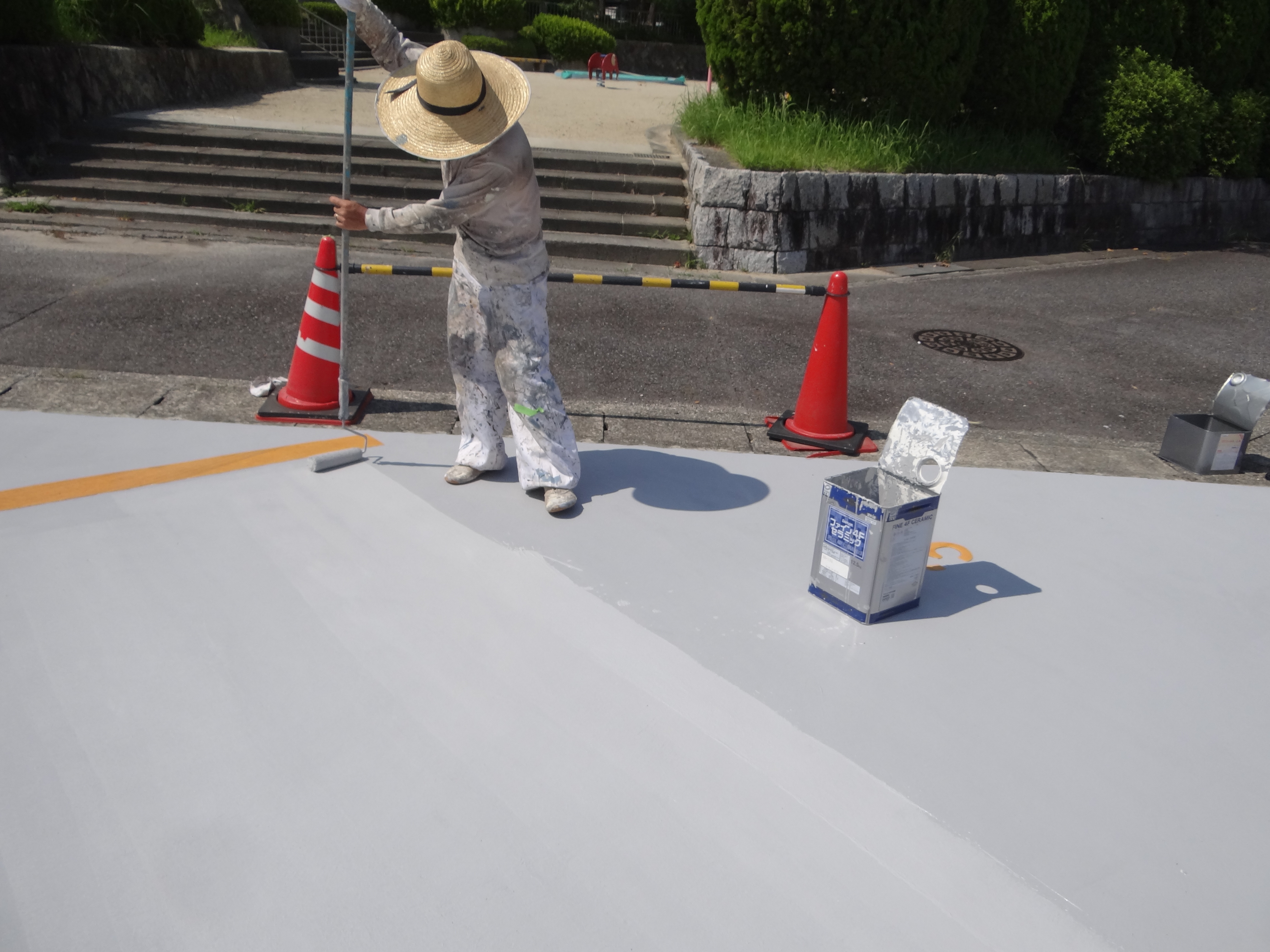 仕上げの上塗りをコロコロ~あぁ暑いあつい。。