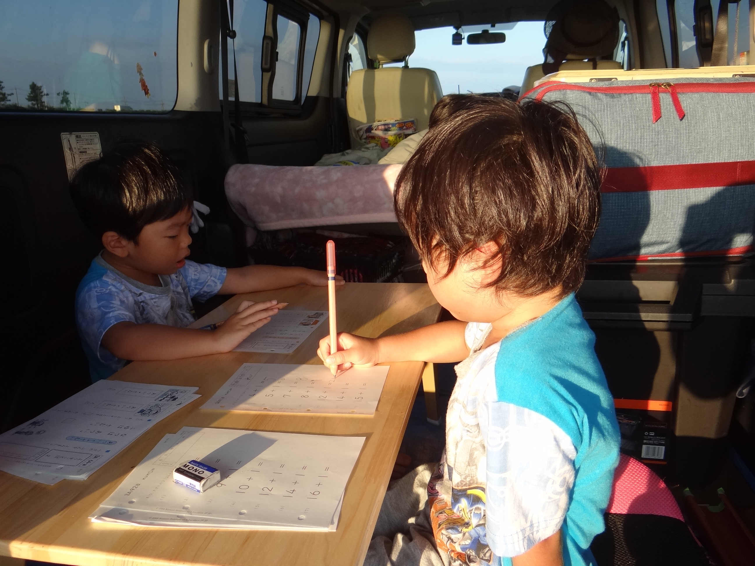 今日は小松基地航空祭に行ってきました。到着してまずやる事は公文の宿題。こんな時でもせっせと宿題を済ませます。