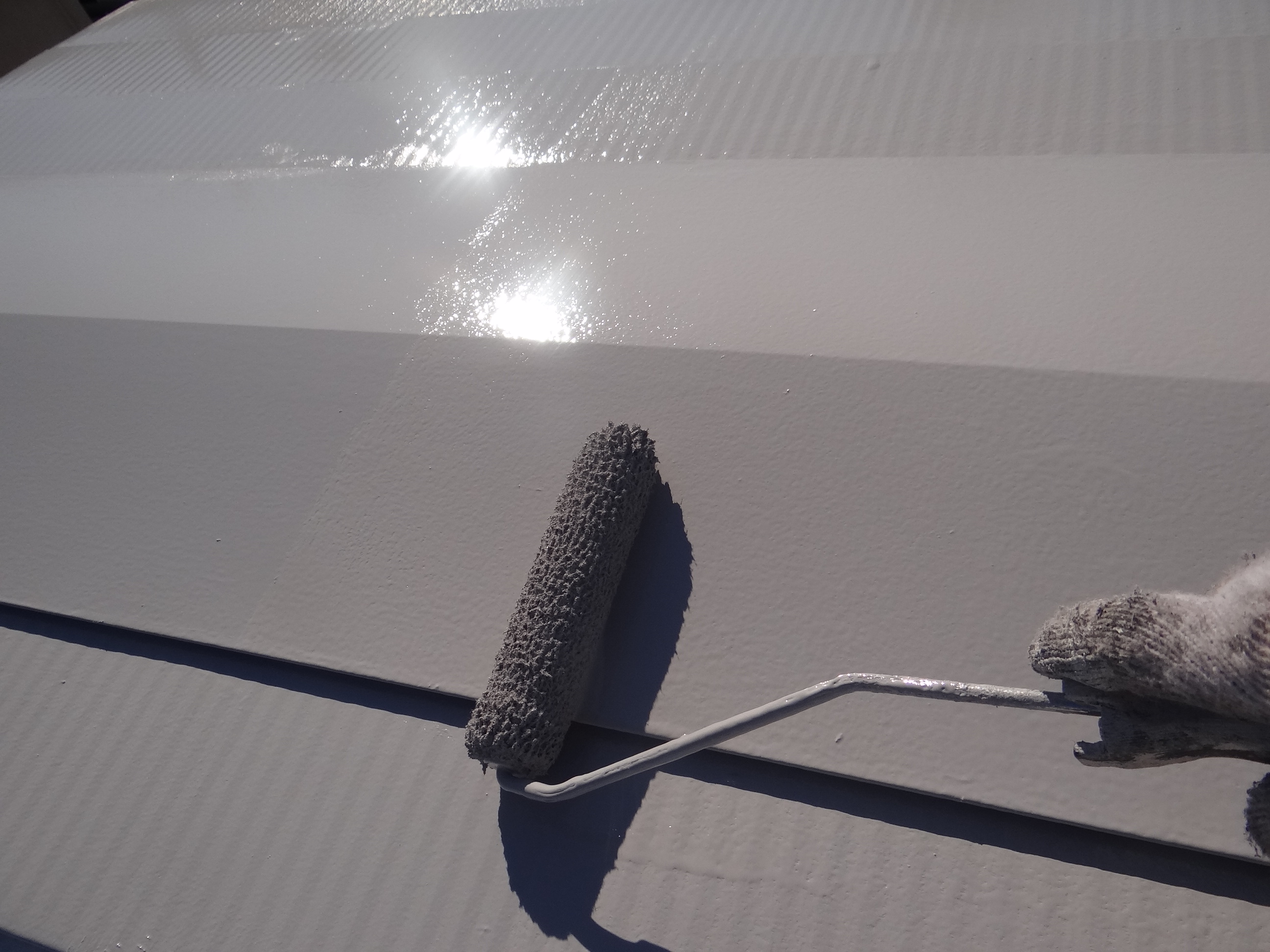 屋根の塗装を行いました。今回使用する材料はフッ素樹脂の遮熱塗料です。