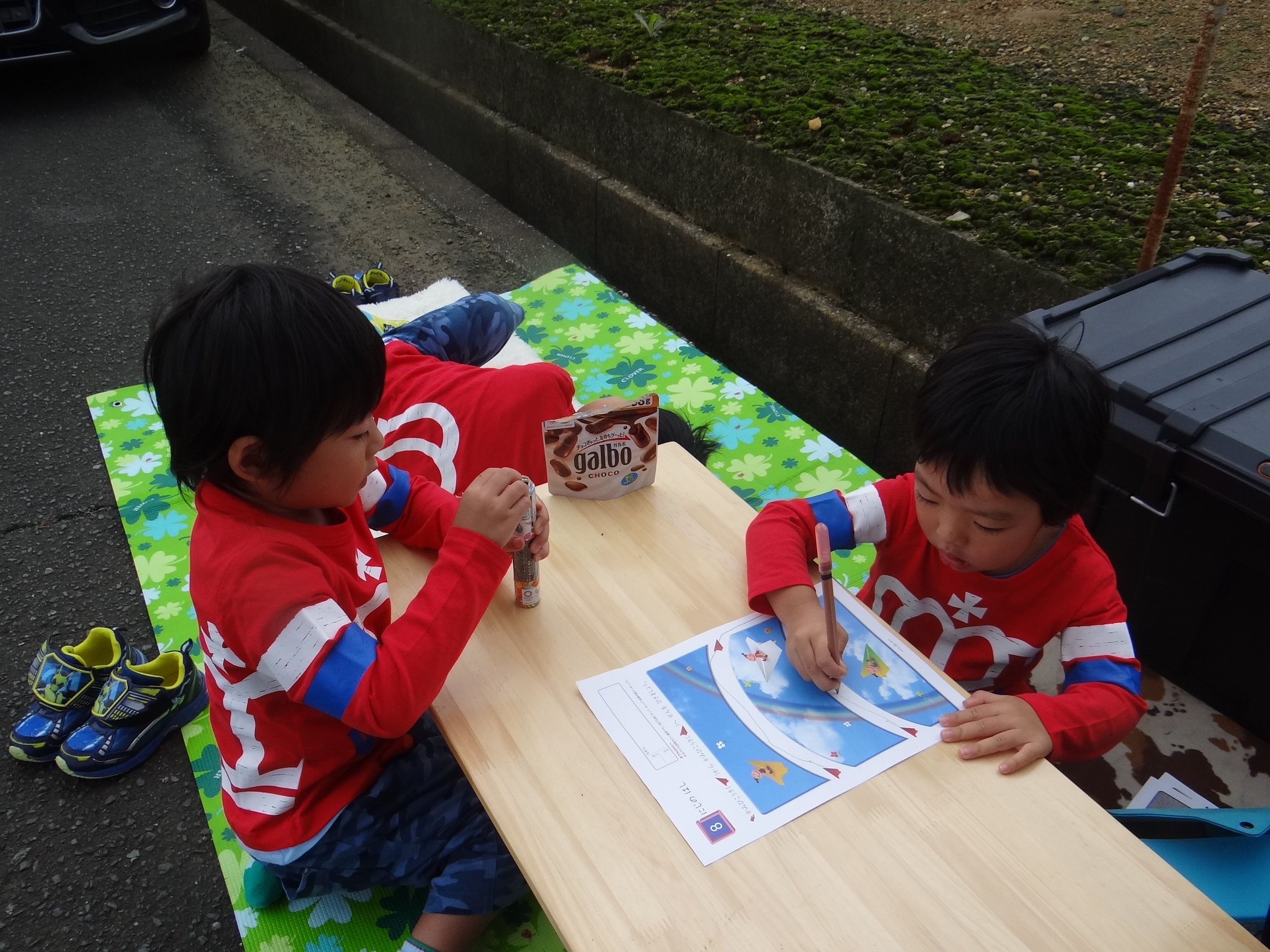 今回は家で公文の宿題を済ませてきたのでおやつを食べたり、折り紙したり、のーんびりと。