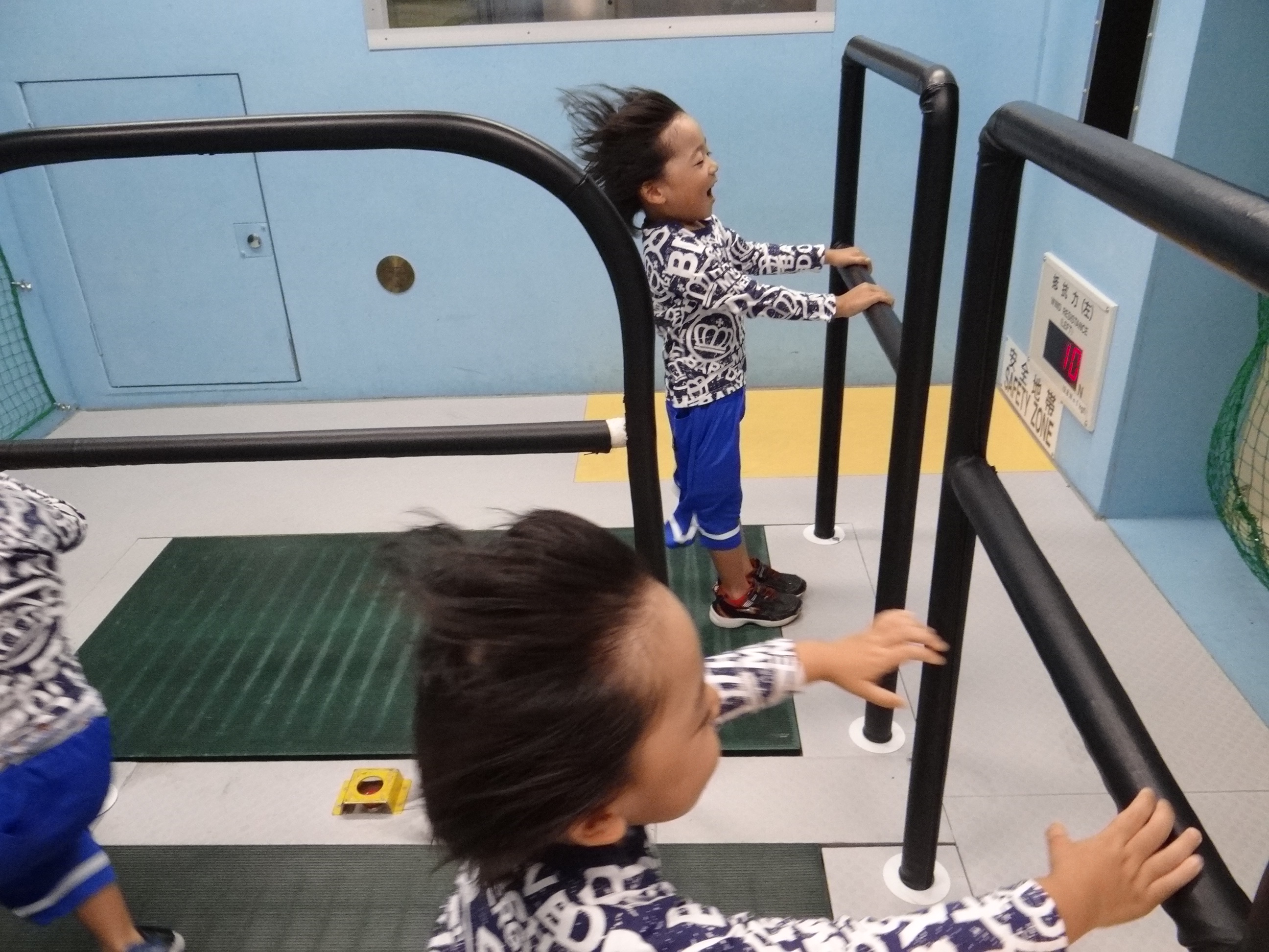 チビを迎えに行ったら、トヨタ産業技術記念館へ行きたい!との事でゴーです。テクノランドで風を体験。ここまではいつも余裕。