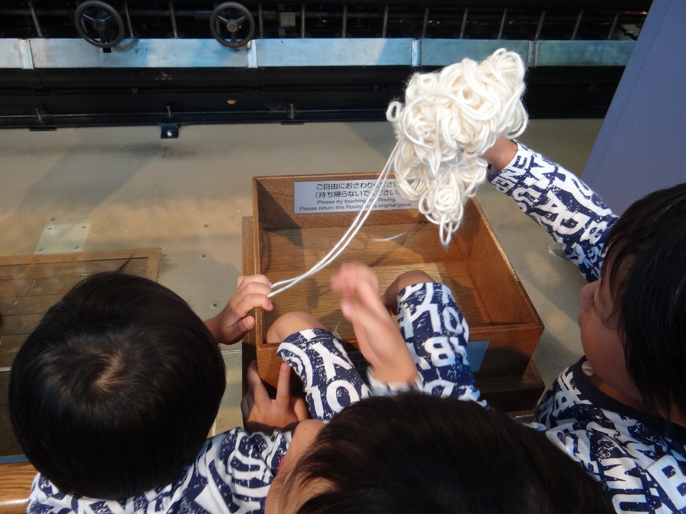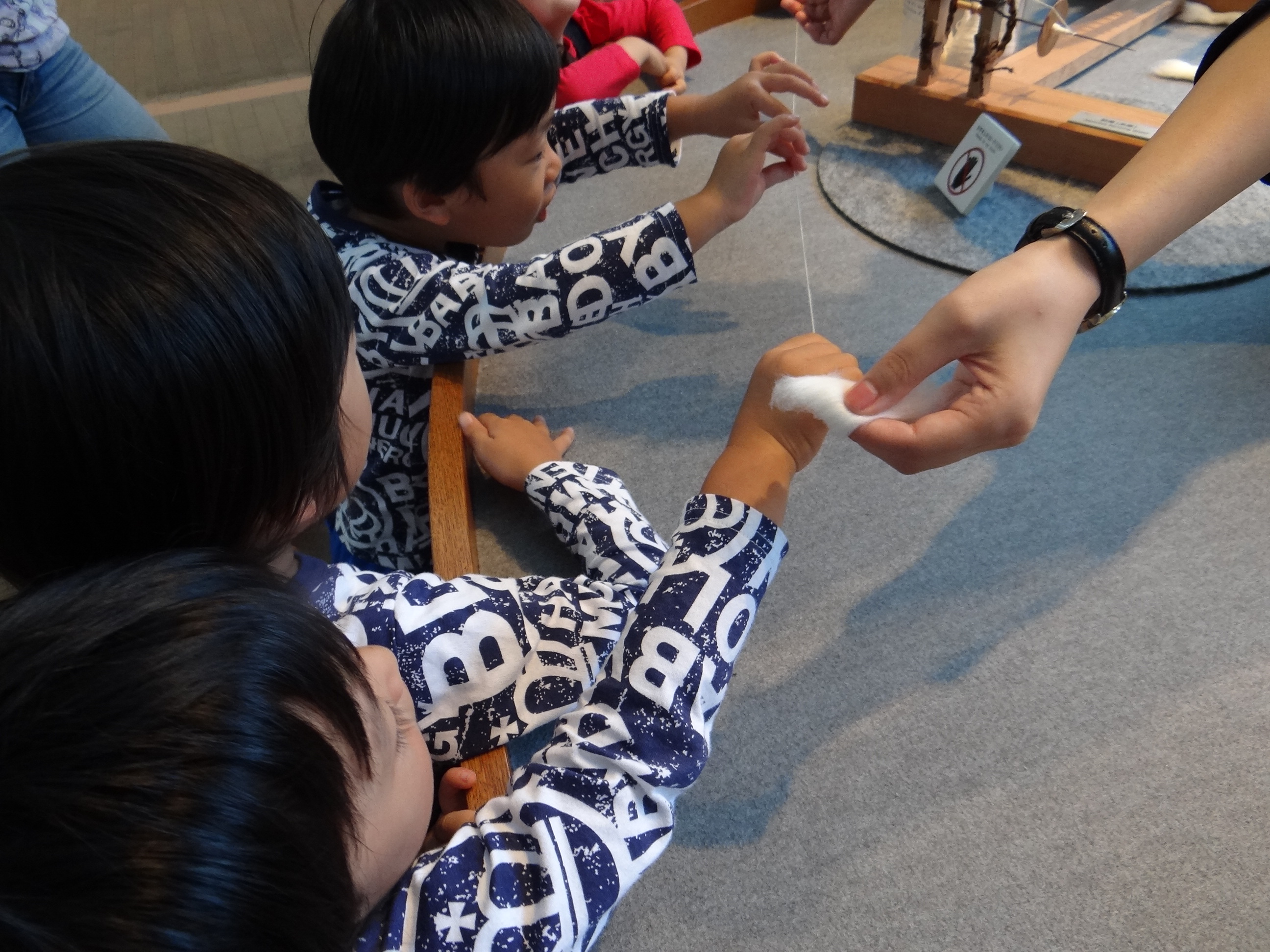 綿から糸をつくる事。だぶん分かってないと思うけど、触らせてもらえました。覚えていてね、手の感触を。