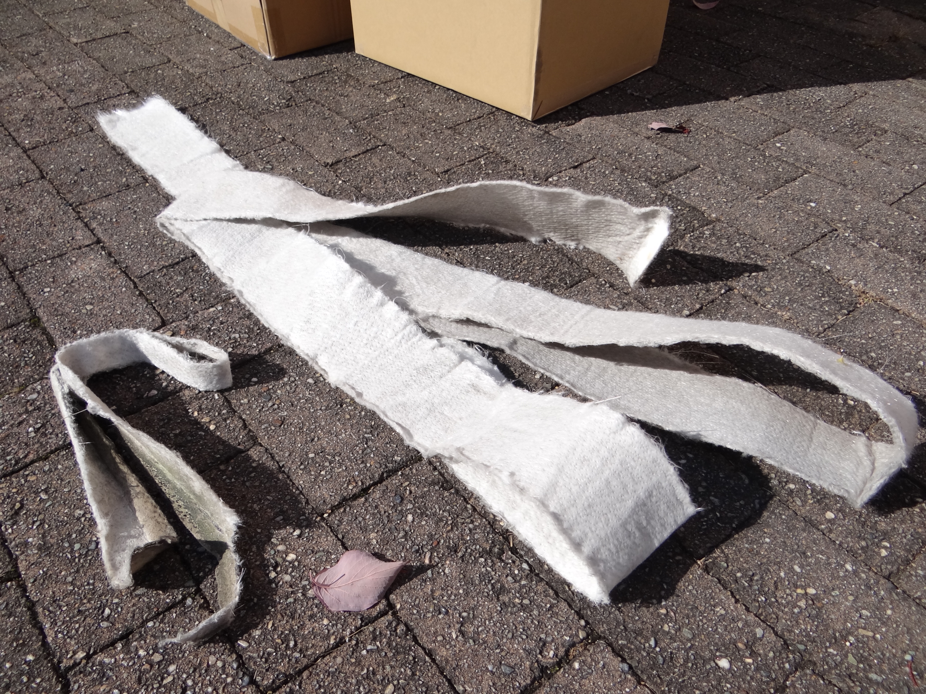 お昼休みに折半屋根の断熱材が風で舞っているのでなんとかしてと、ご連絡です。
