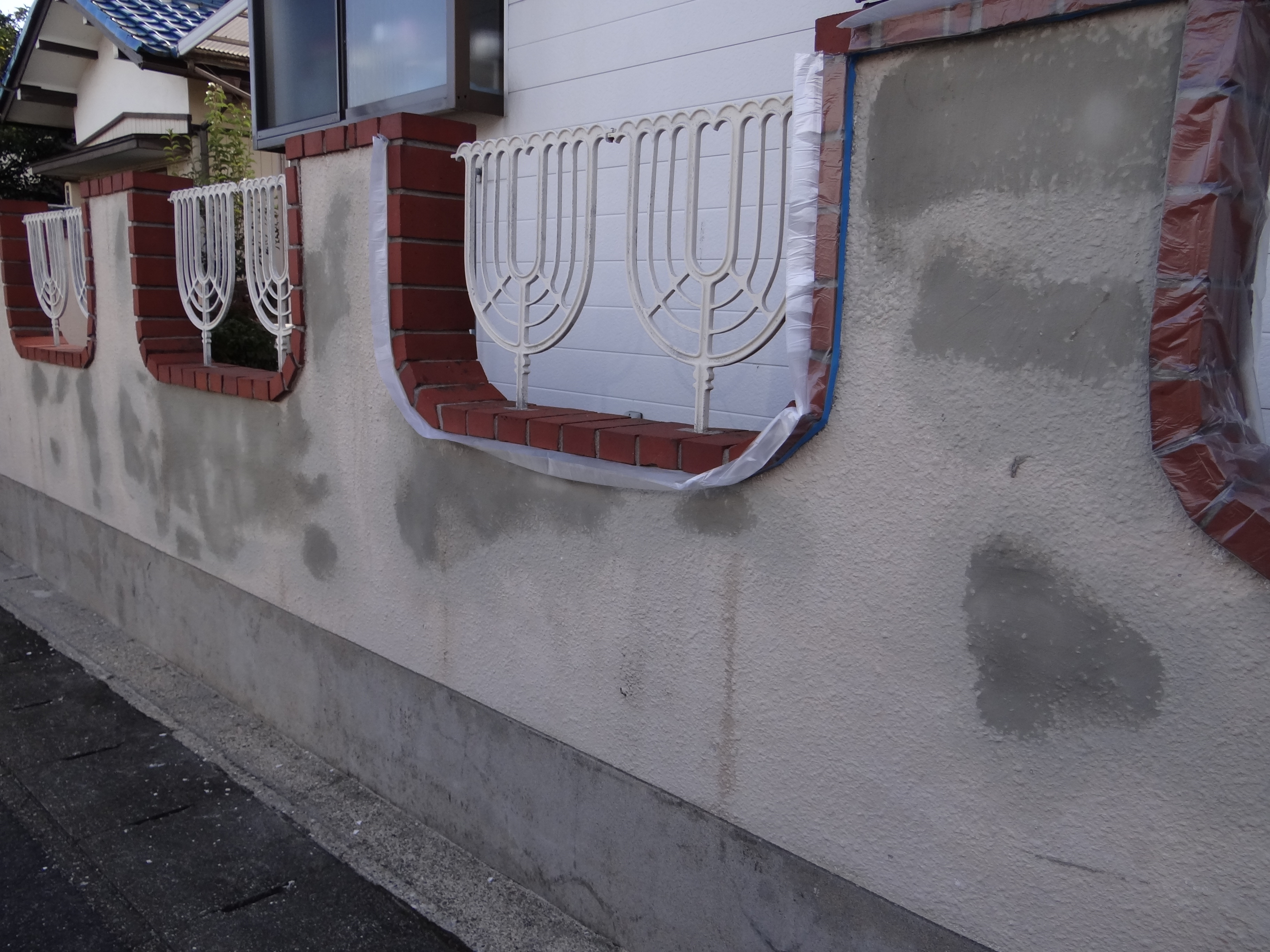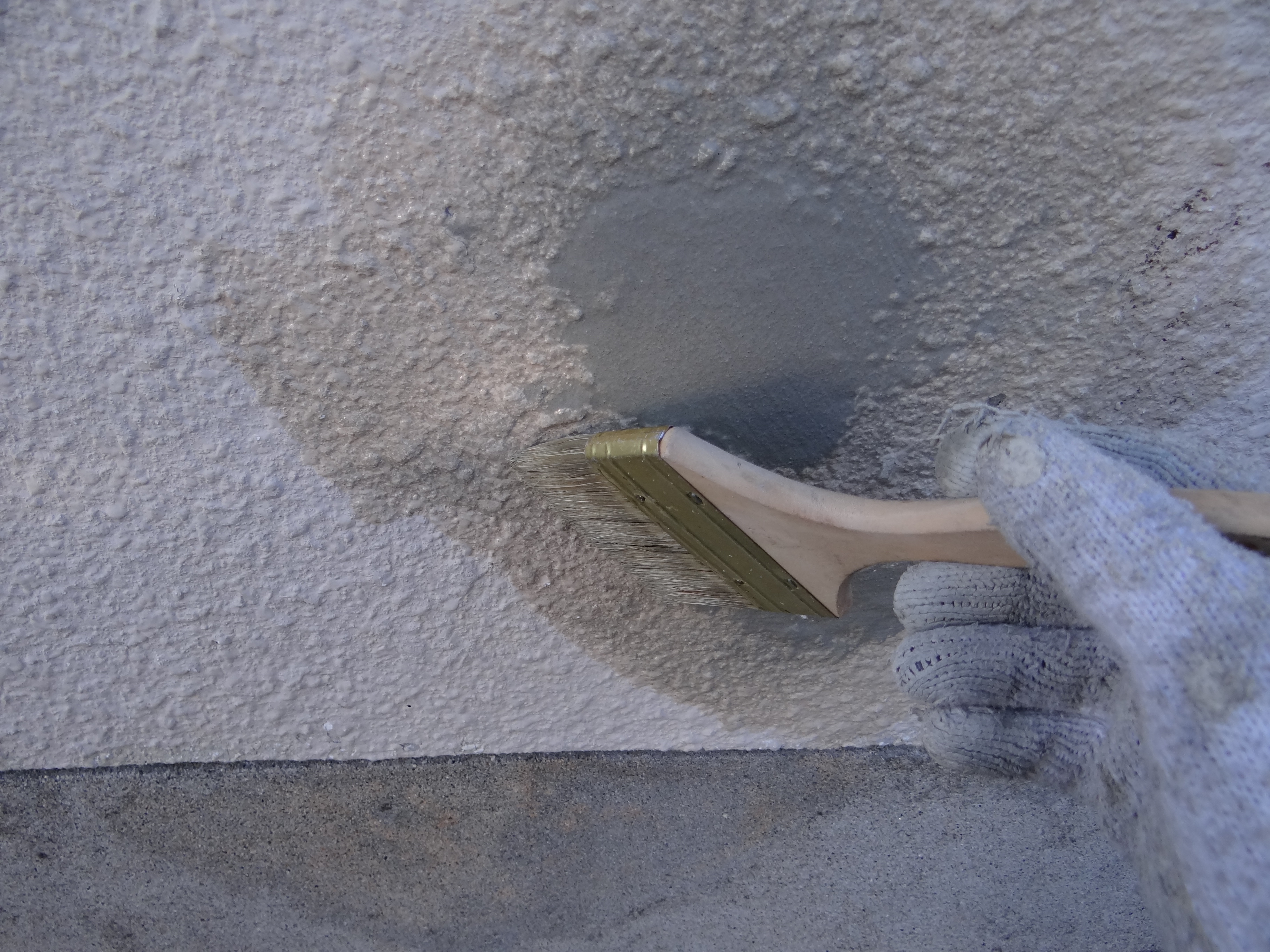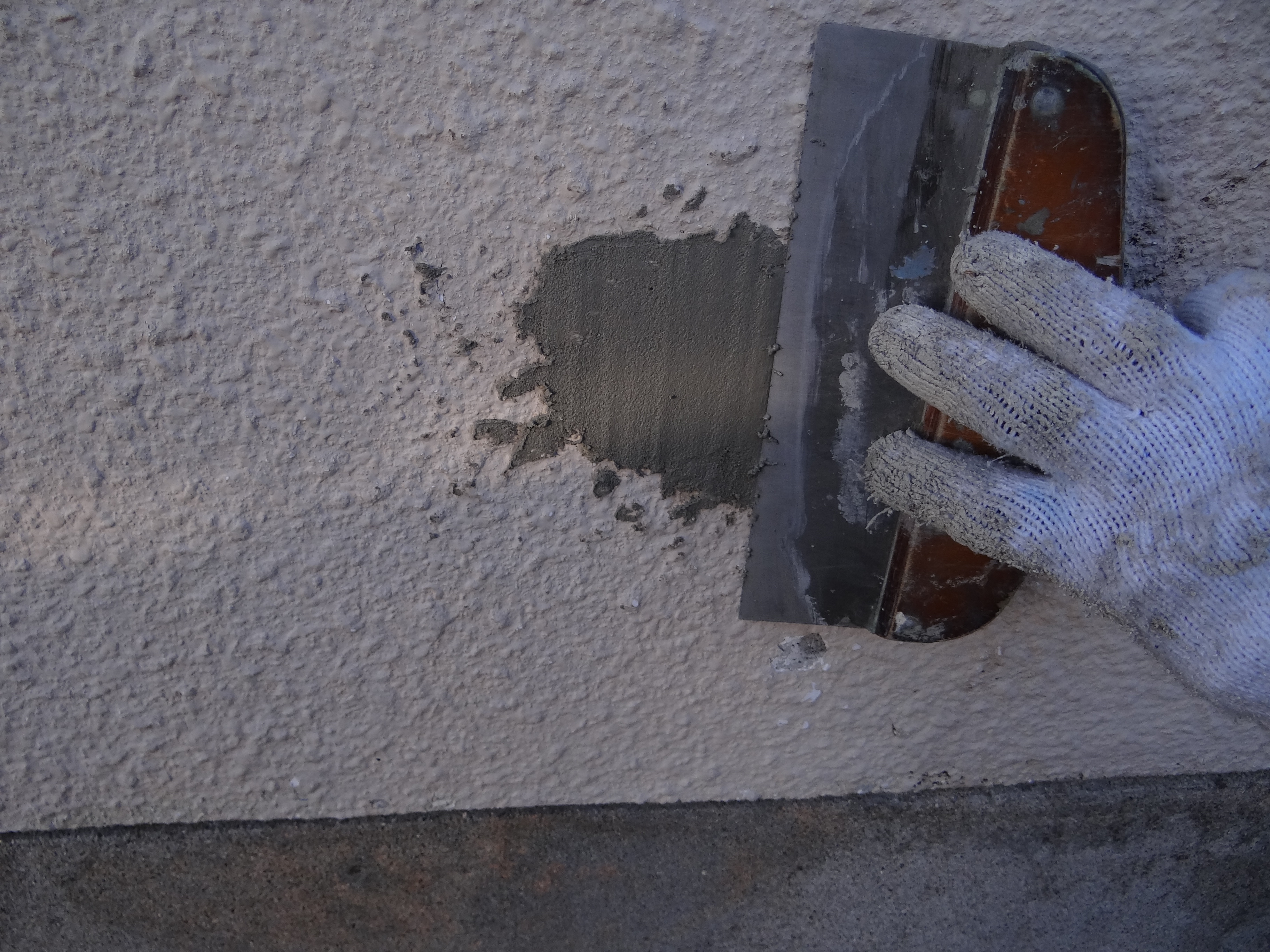 今朝の月。きれいだったから撮ってみた。今日は塀の塗装工事。まずは塗膜の剥離した箇所の補修です。ケミカルセメントを使用して、丁寧に進めます。補修完了。その後はパターン吹きを行って、今日はここまで。