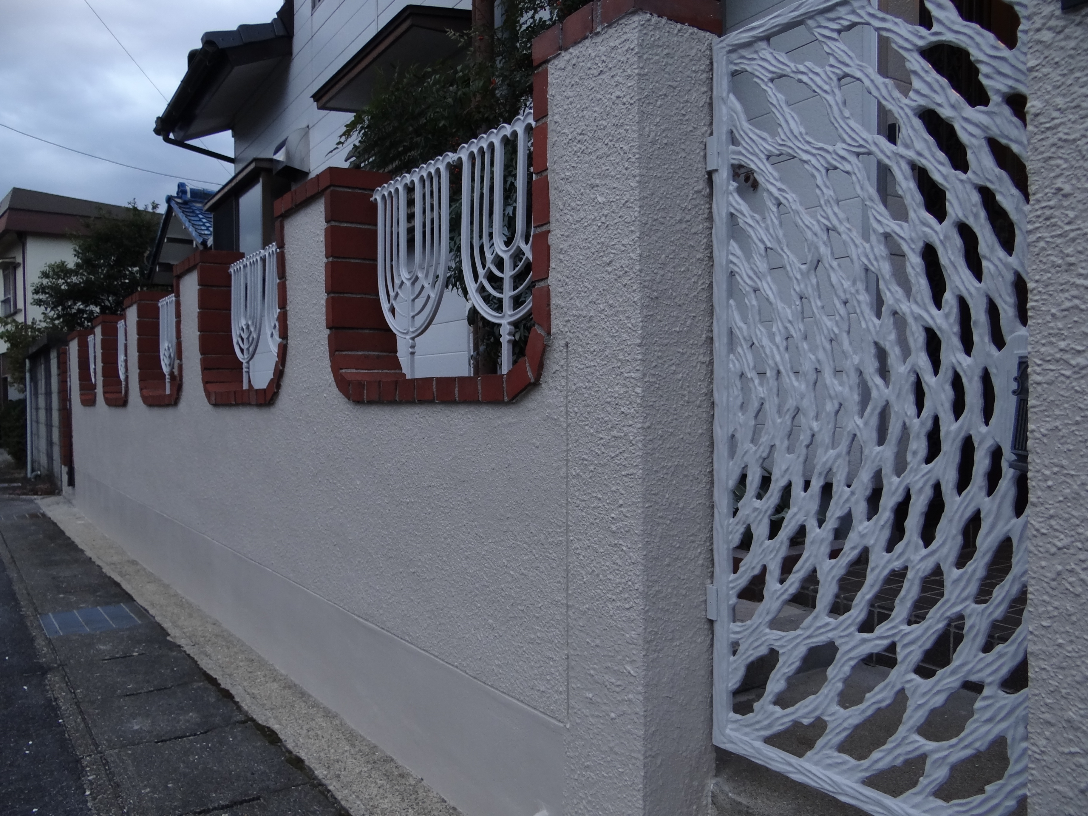 昨日の続きで塀の塗装工事。門なども塗ります。