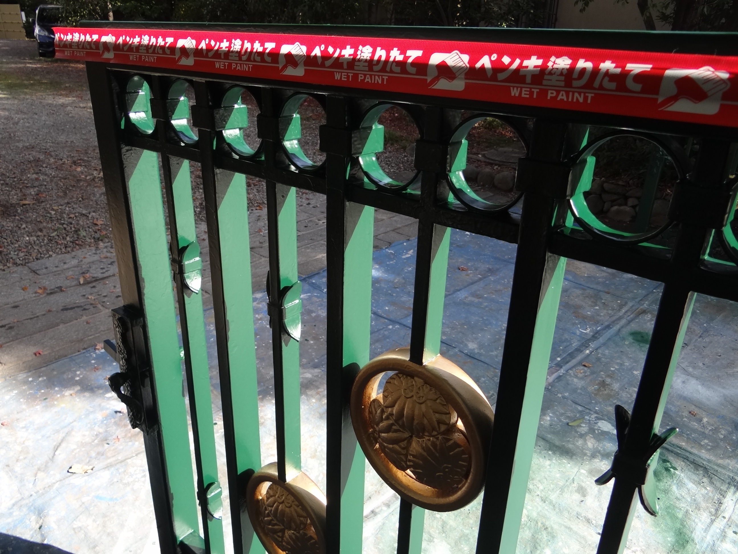 門の塗装工事完了。