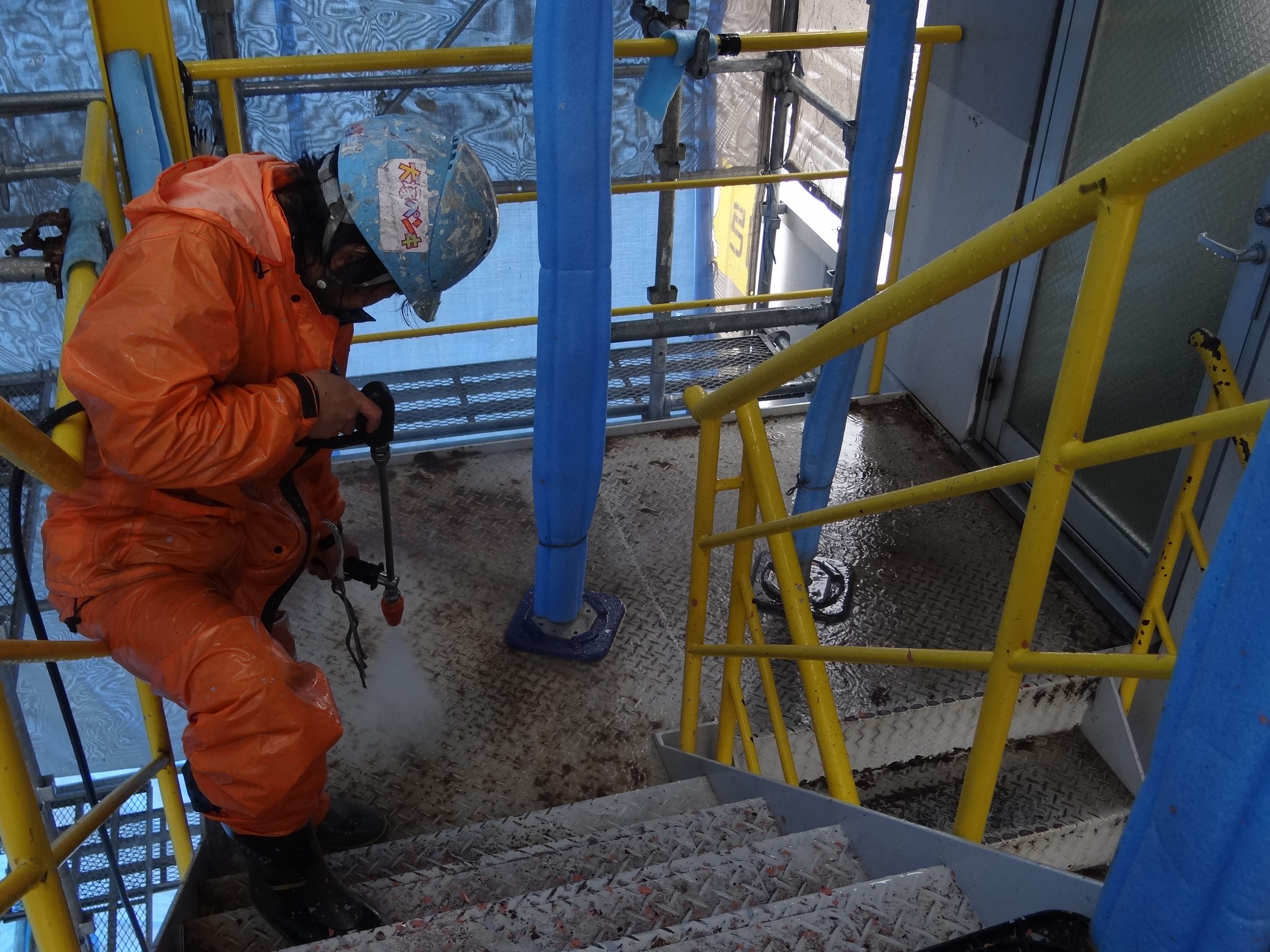 今朝のチビ達の公文。長男は待ちに待った漢字が始まりました。お父さんのお仕事は外部階段の仮設足場の設営。そして高圧洗浄を行いました。暖かい日で助かります。帰宅後、妻はたまごっち。なんでも復刻版らしい。